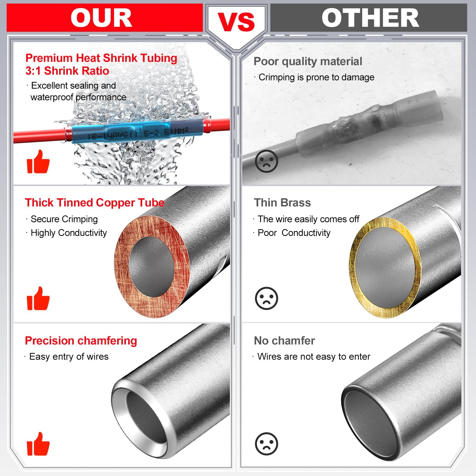 Heat Shrink Butt Connectors 26-24AWG, 100 Pcs Waterproof Electrical Crimp Spl...
