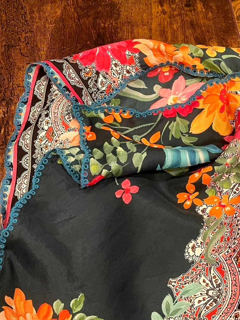 Johnny Was Womens 100 Silk, Multicolor Floral, Embroidery, Sli