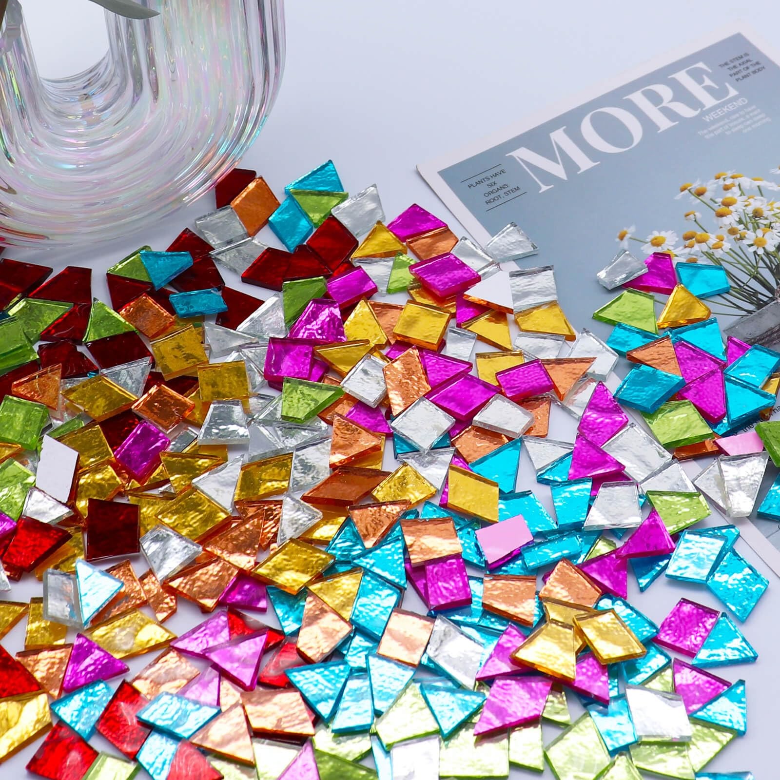 LITMIND 1.1LB Mixed Colors Irregular Glass Mosaic 0.5 1.5 inch, Color