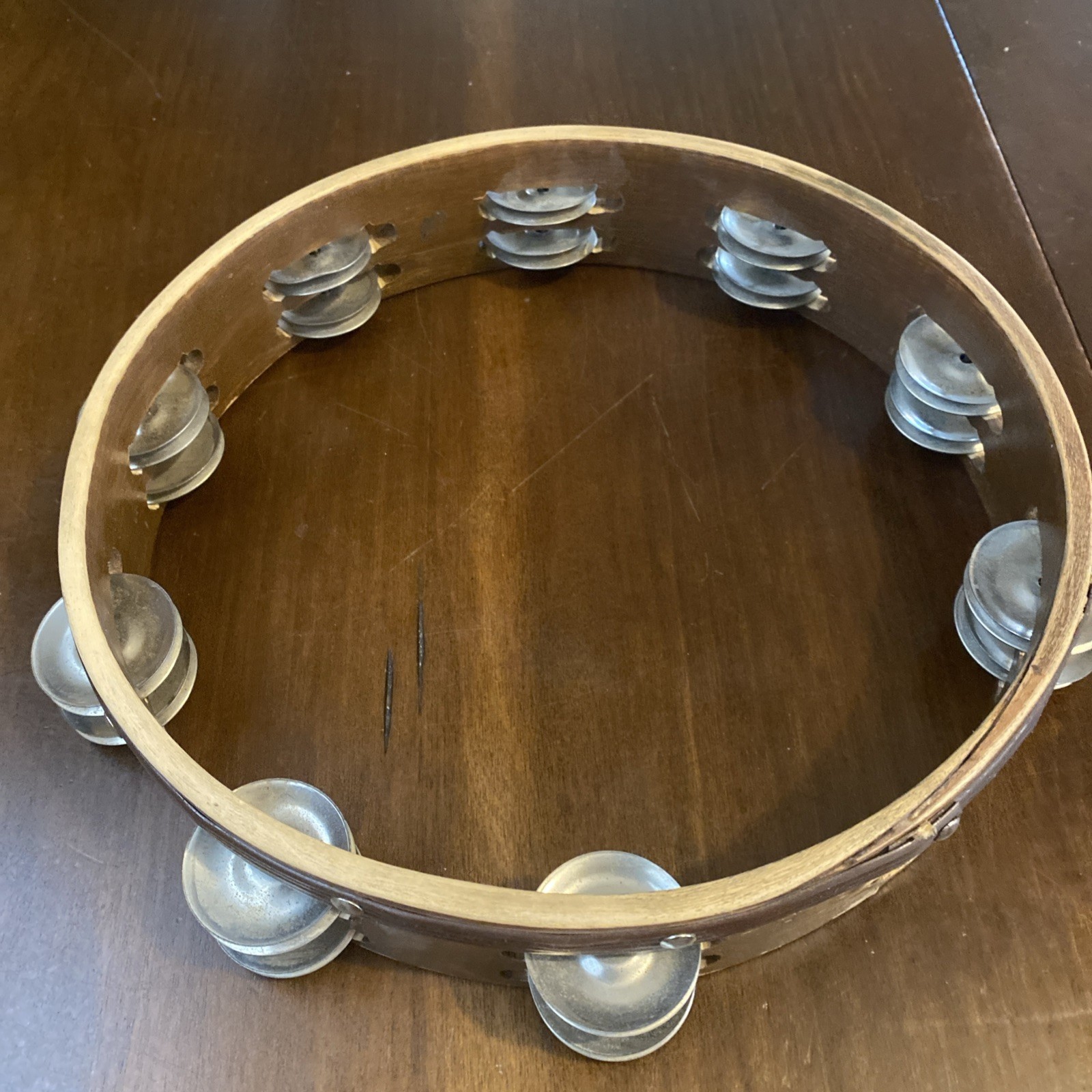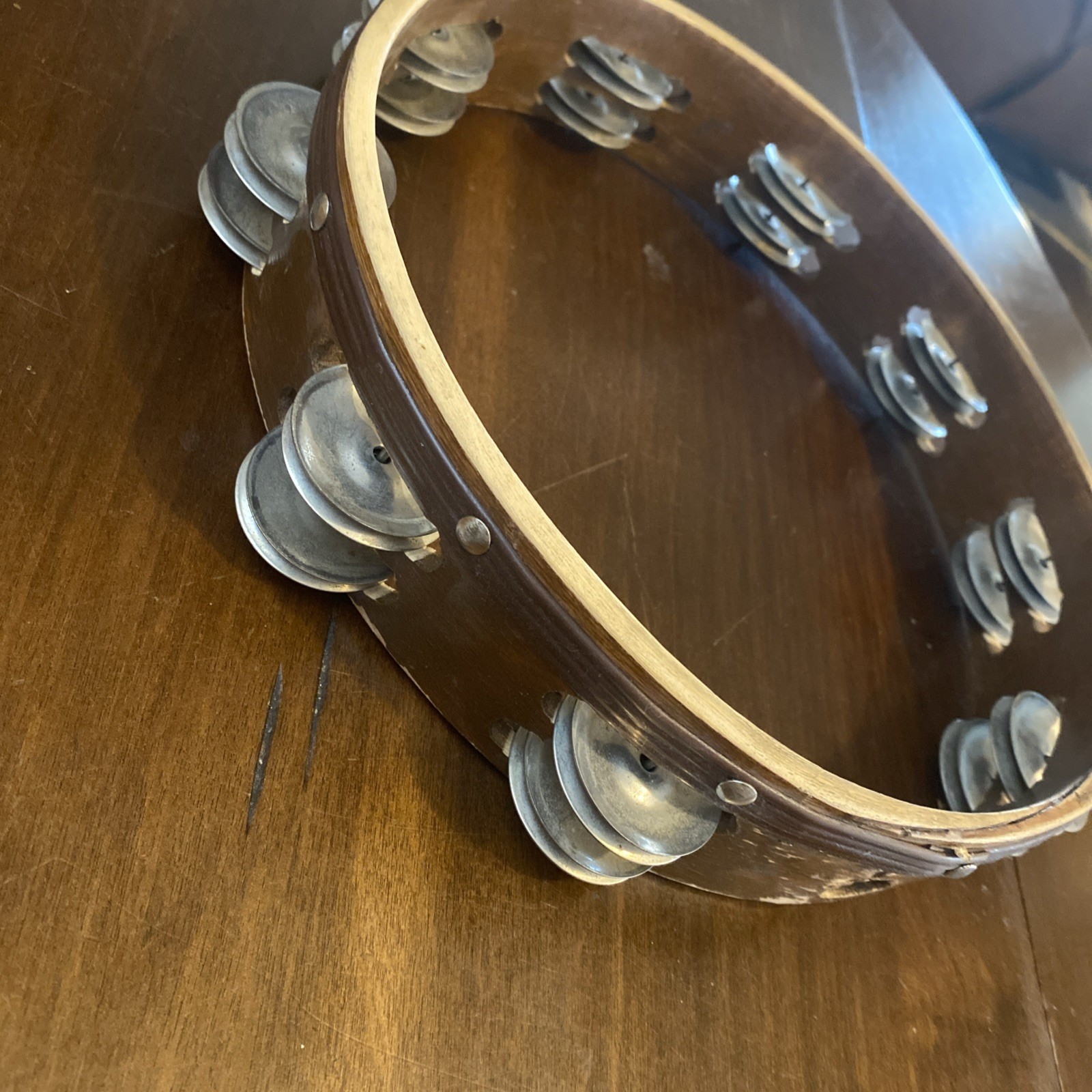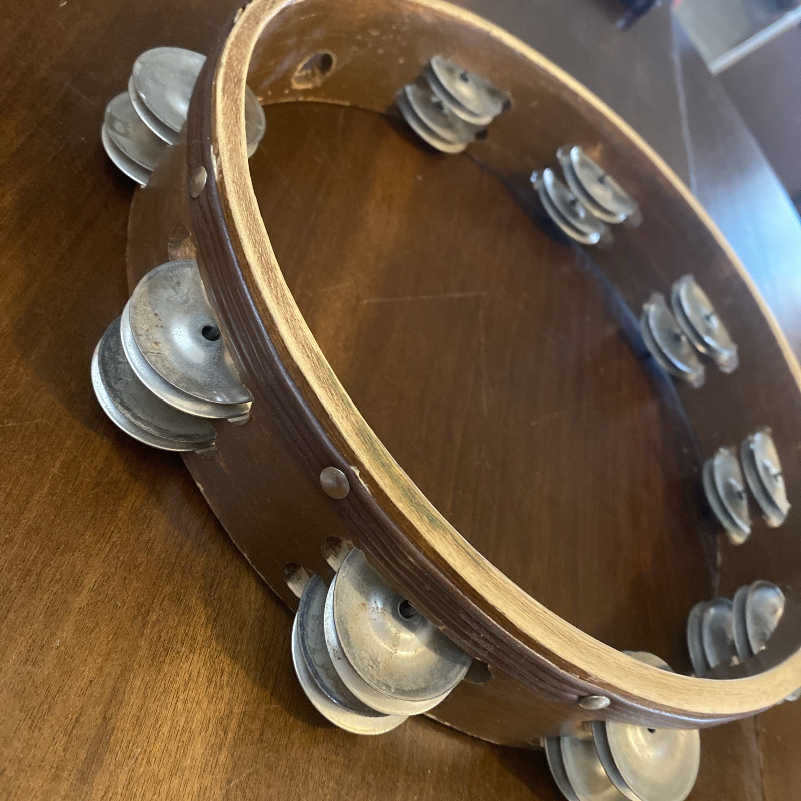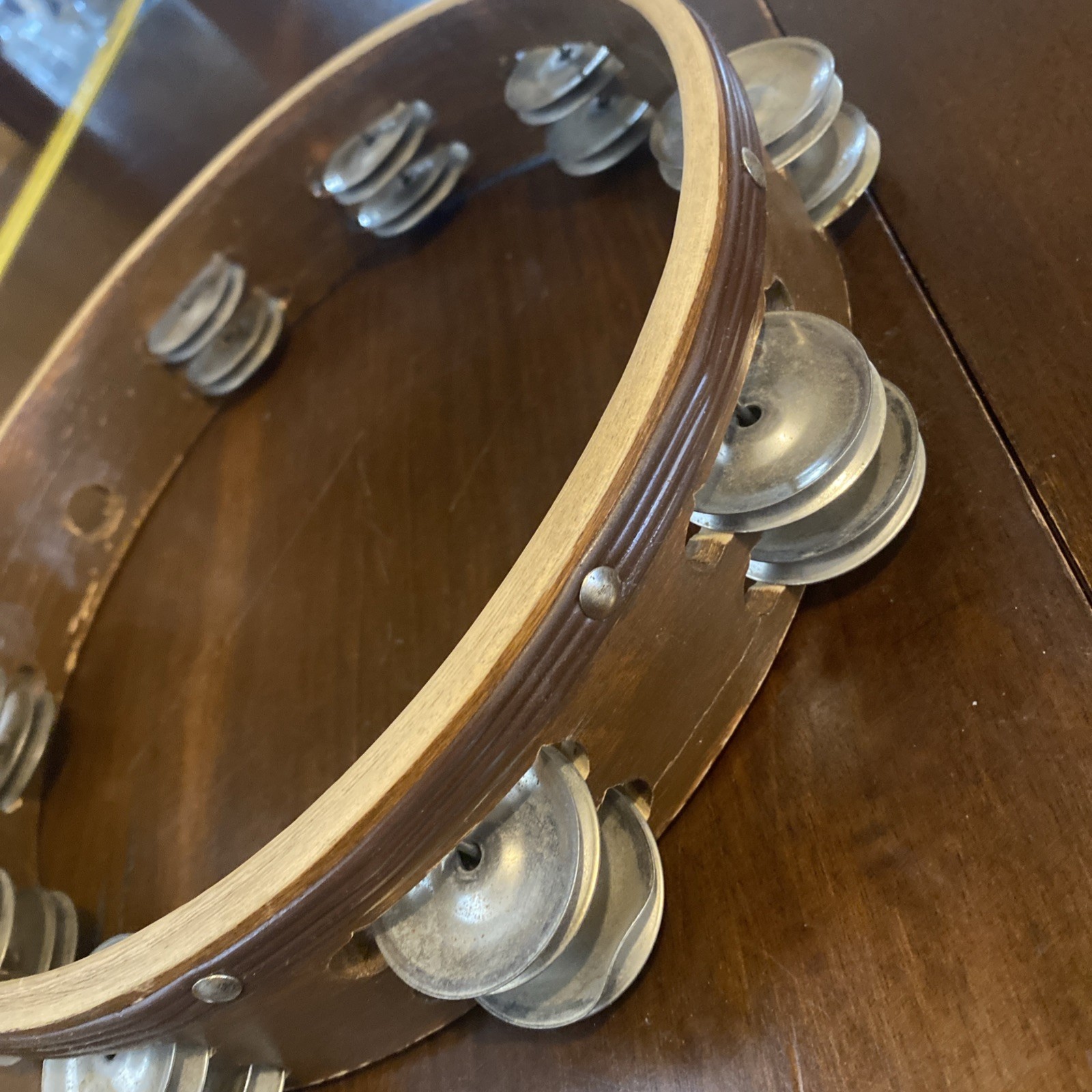 как выглядит Wood Tambourine 10" Double Row Metal Jingles Hand Held Music Percussion фото