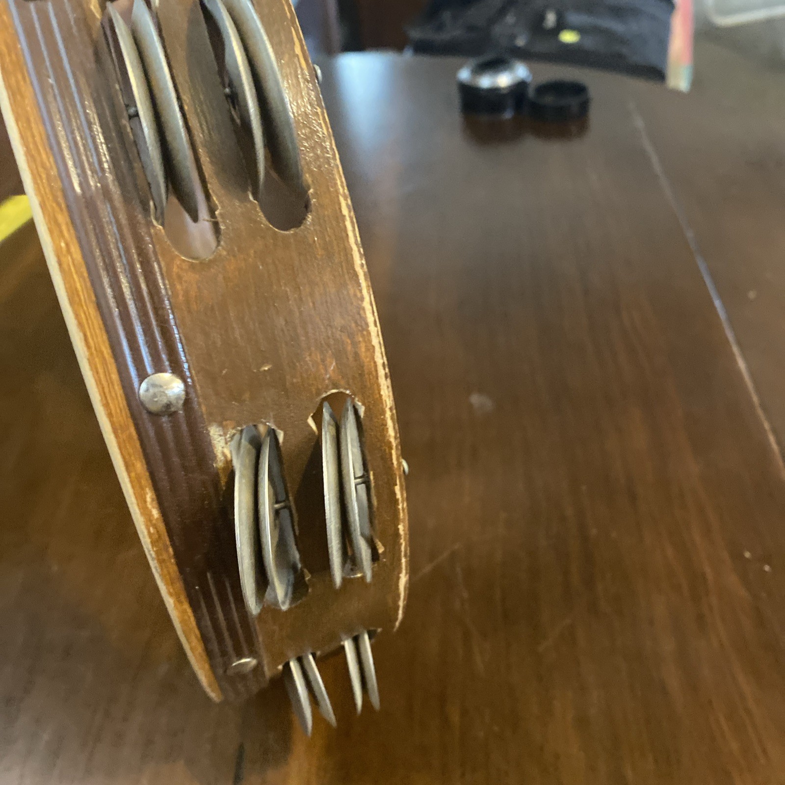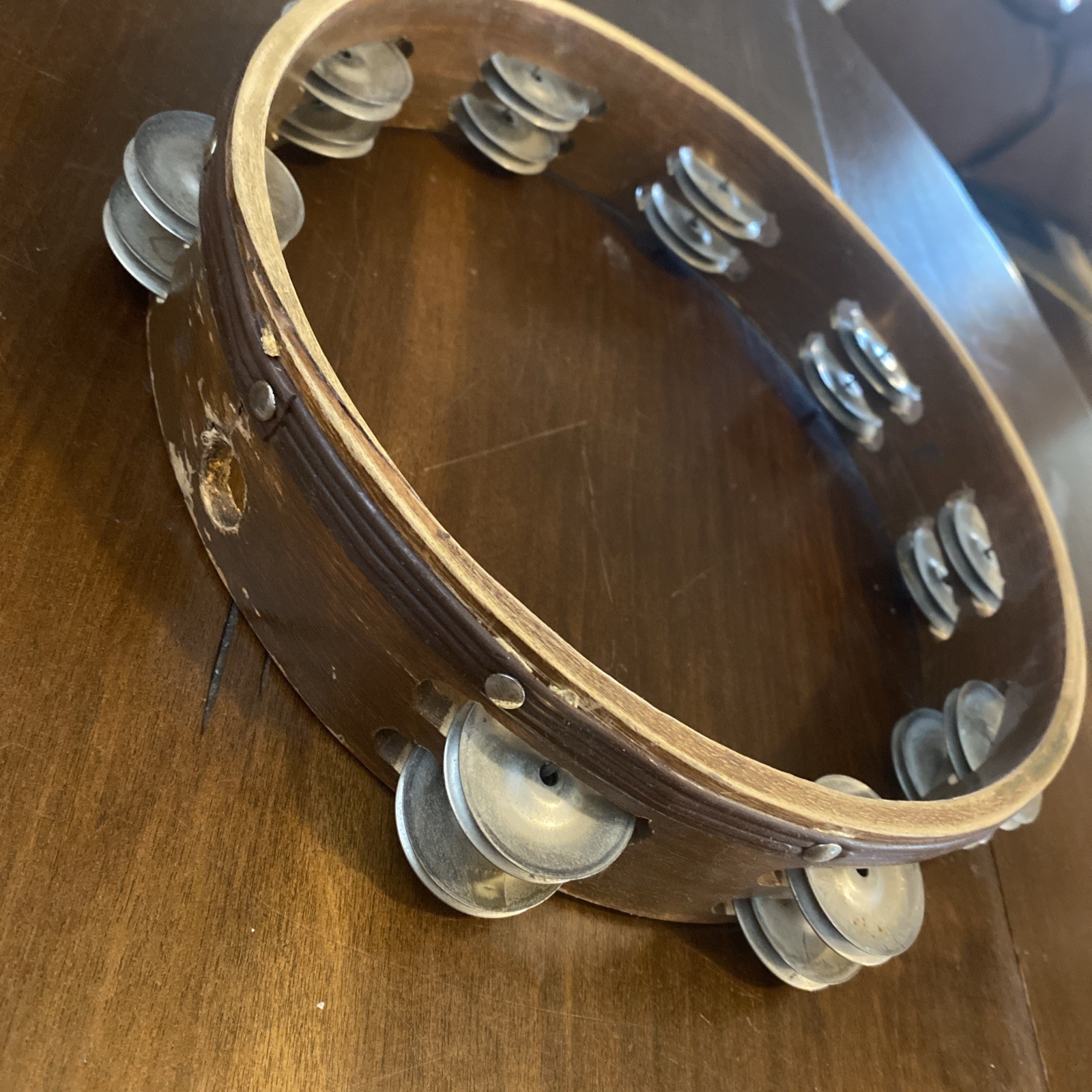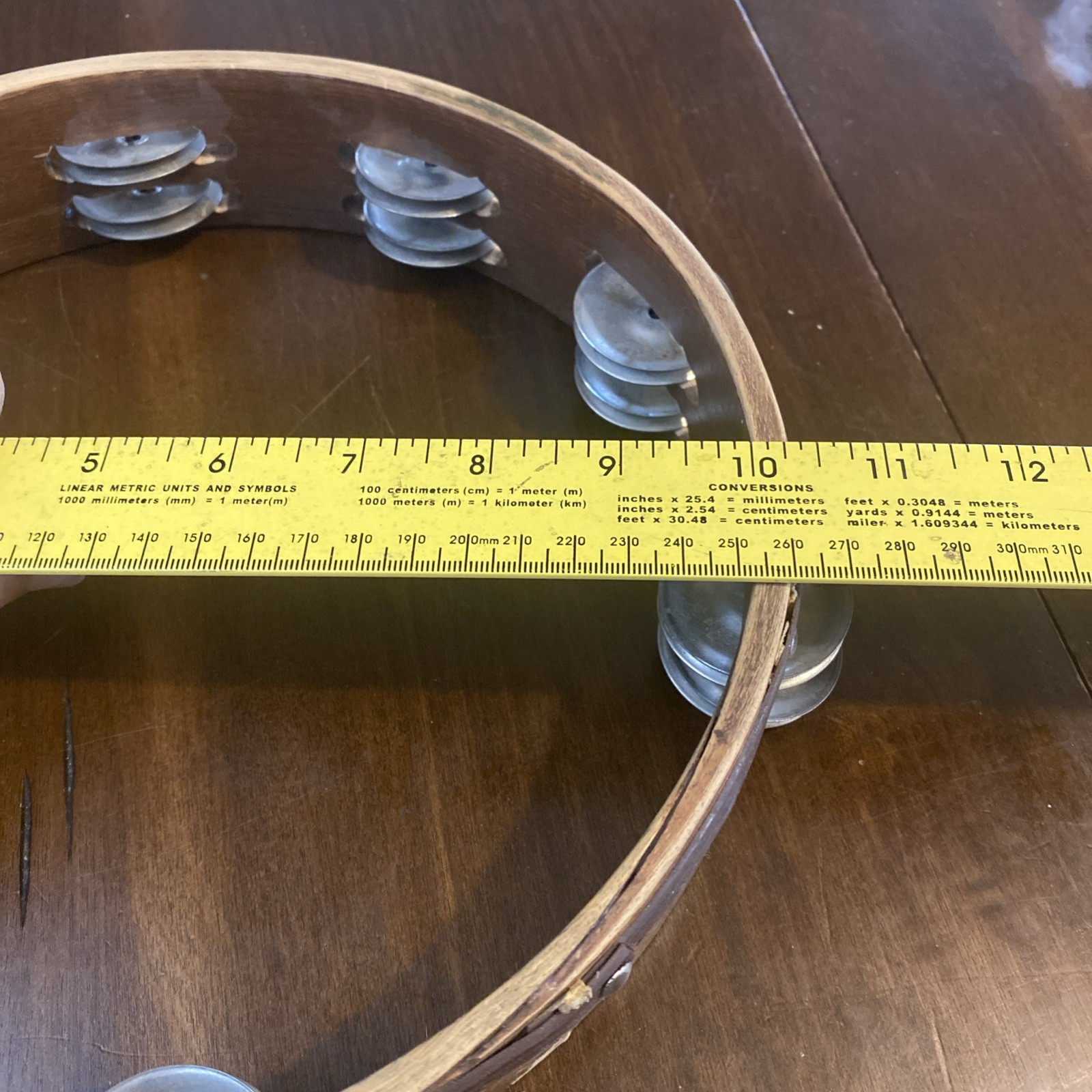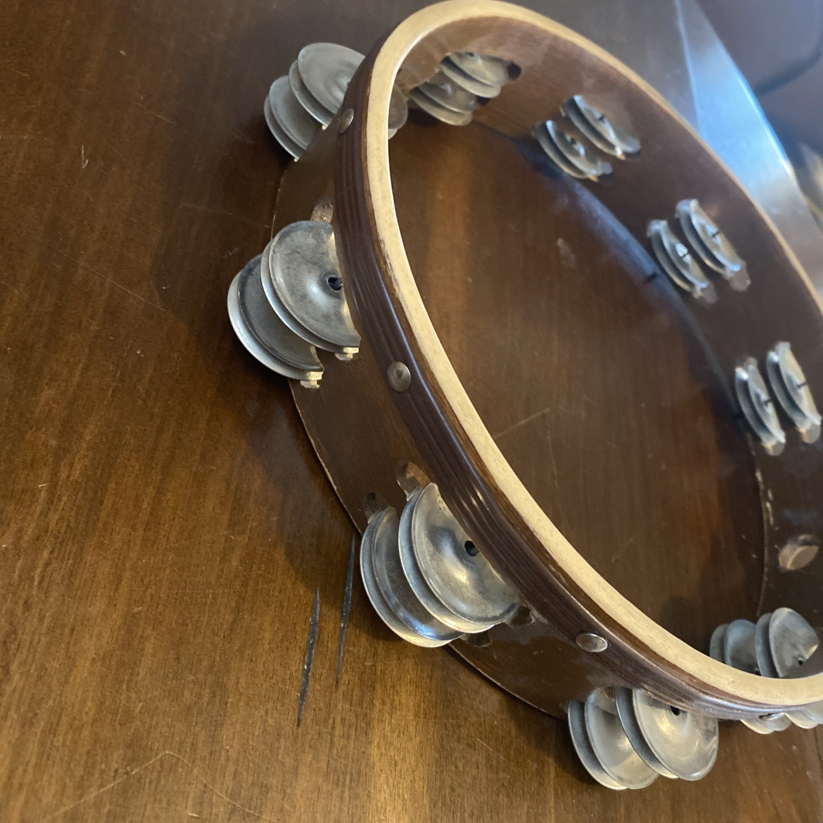 как выглядит Wood Tambourine 10" Double Row Metal Jingles Hand Held Music Percussion фото