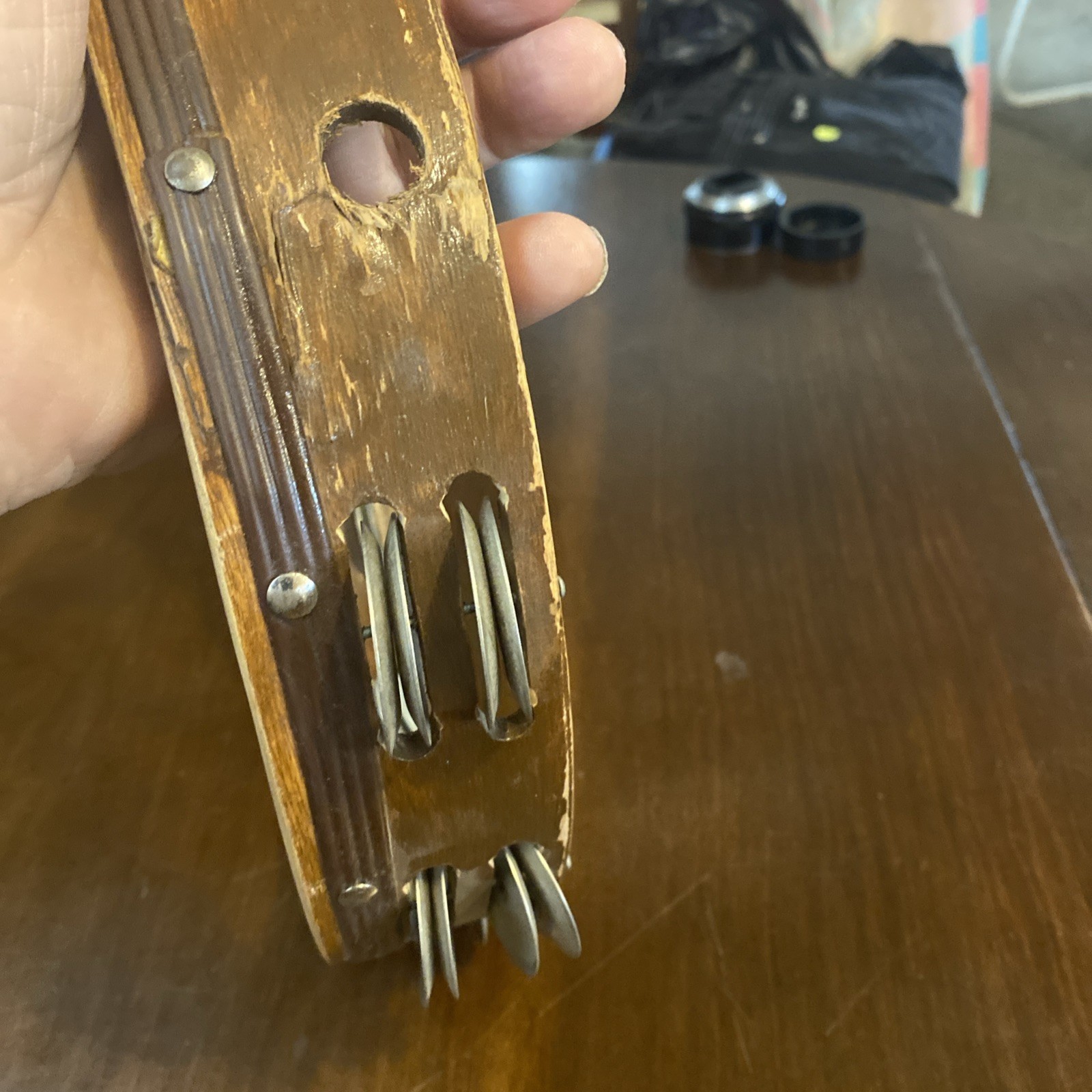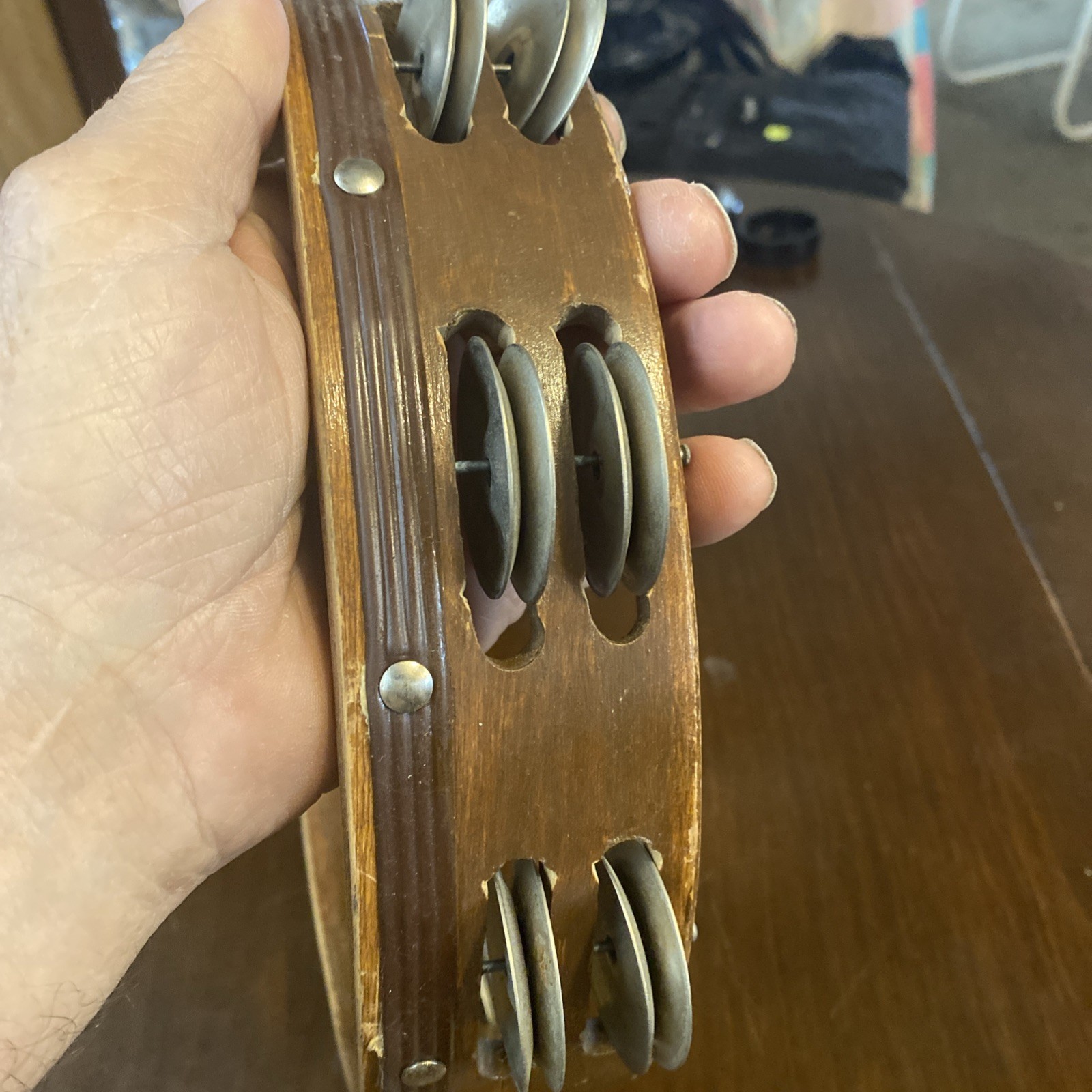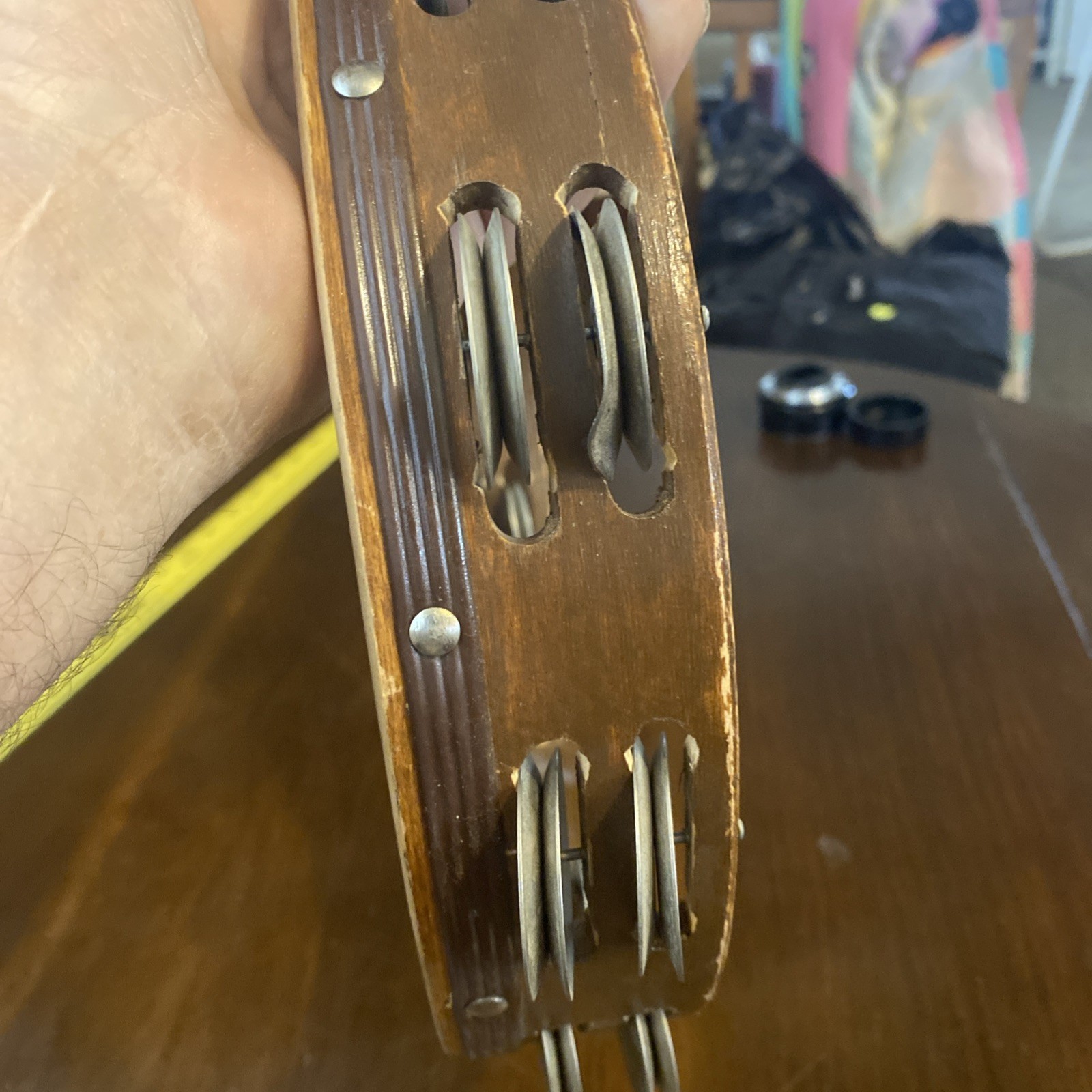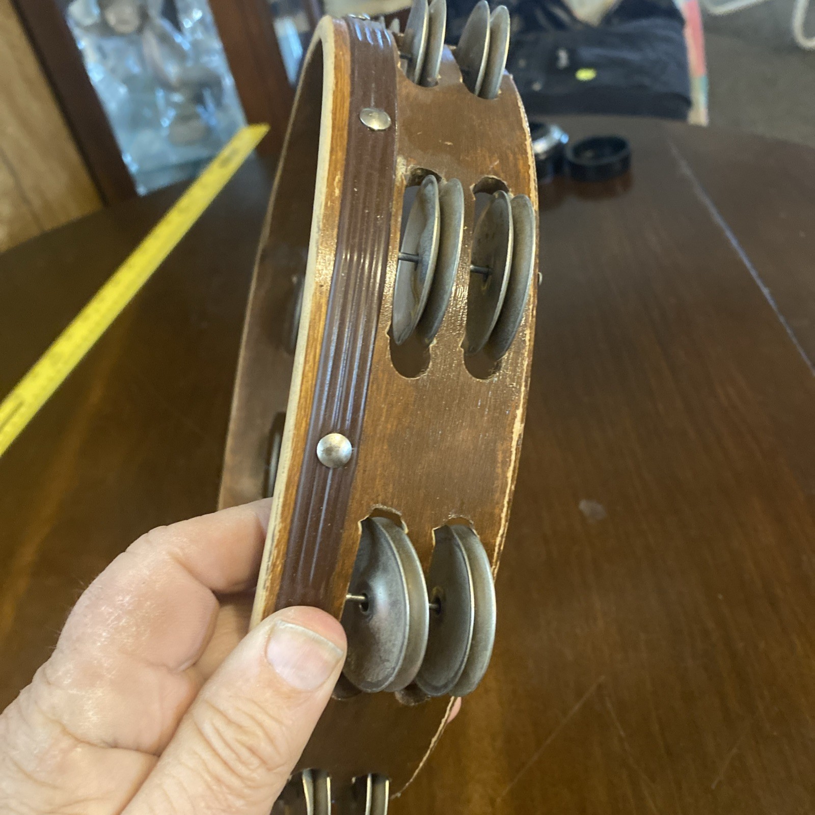 как выглядит Wood Tambourine 10" Double Row Metal Jingles Hand Held Music Percussion фото