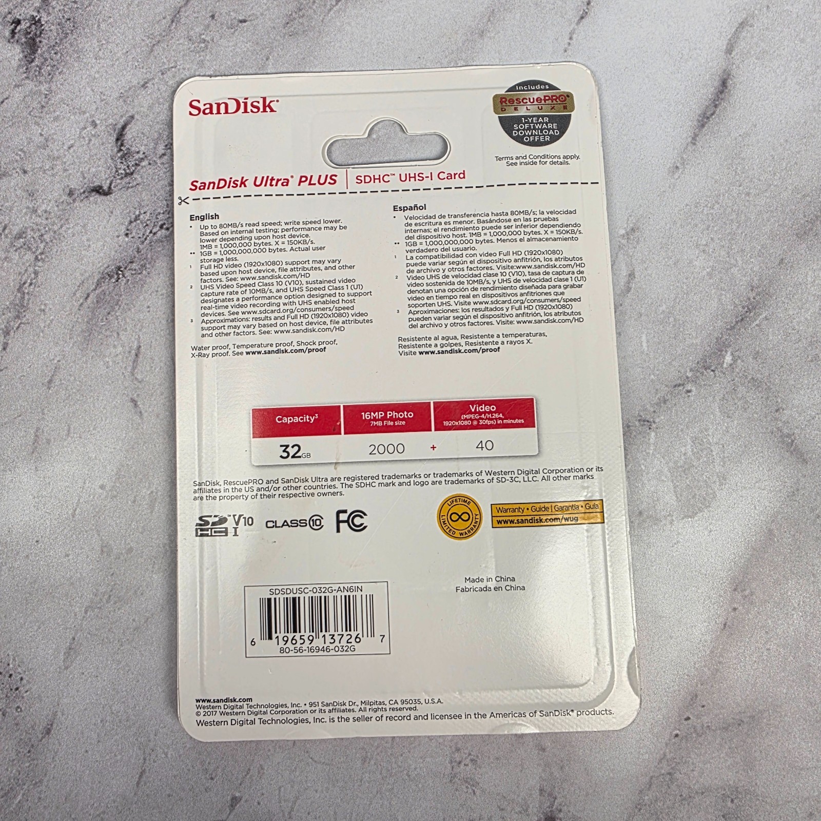Format: SDHC UHS-I