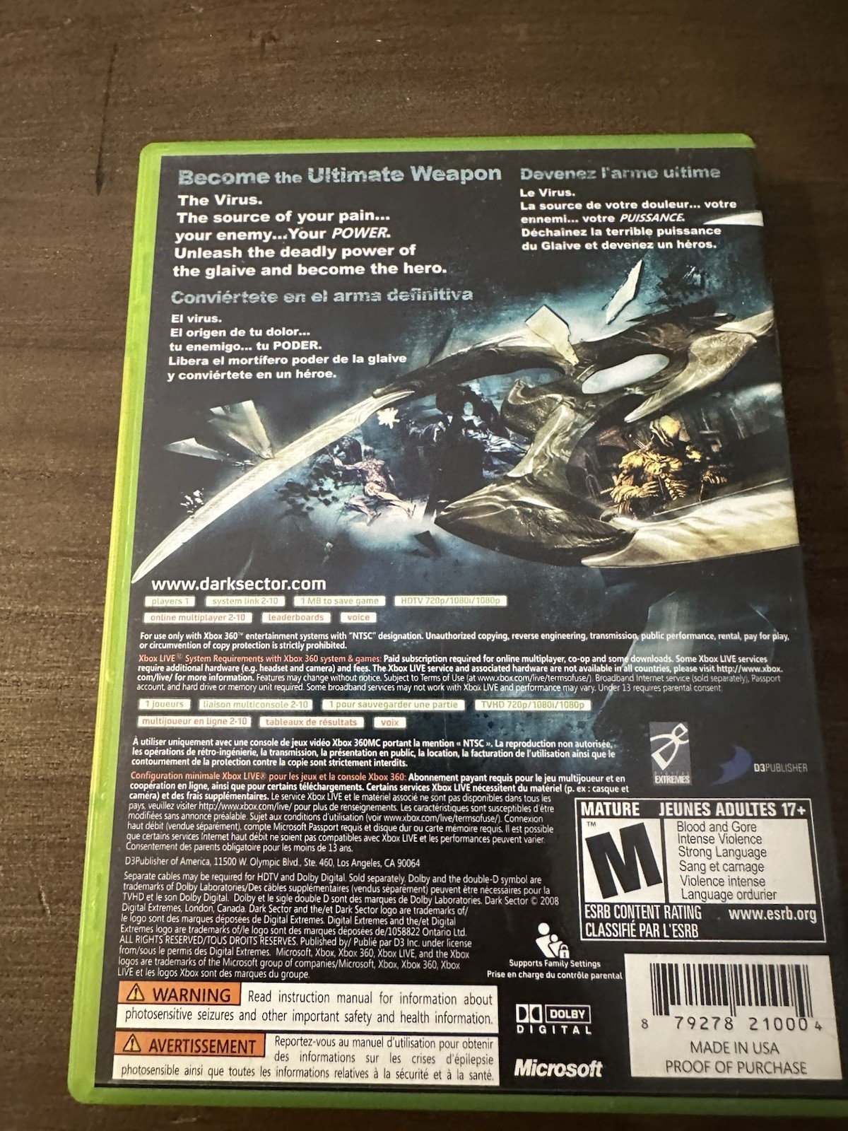 как выглядит Dark Sector Microsoft Xbox 360, 2008 CIB Tested Minor Artwork Damage фото