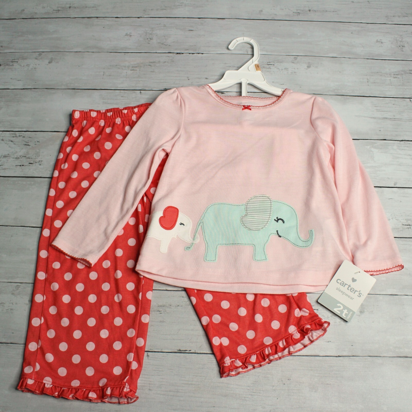 как выглядит Carters Vintage Baby Girls Pajama Set Toddler Size 2T Top Pants Elephant фото