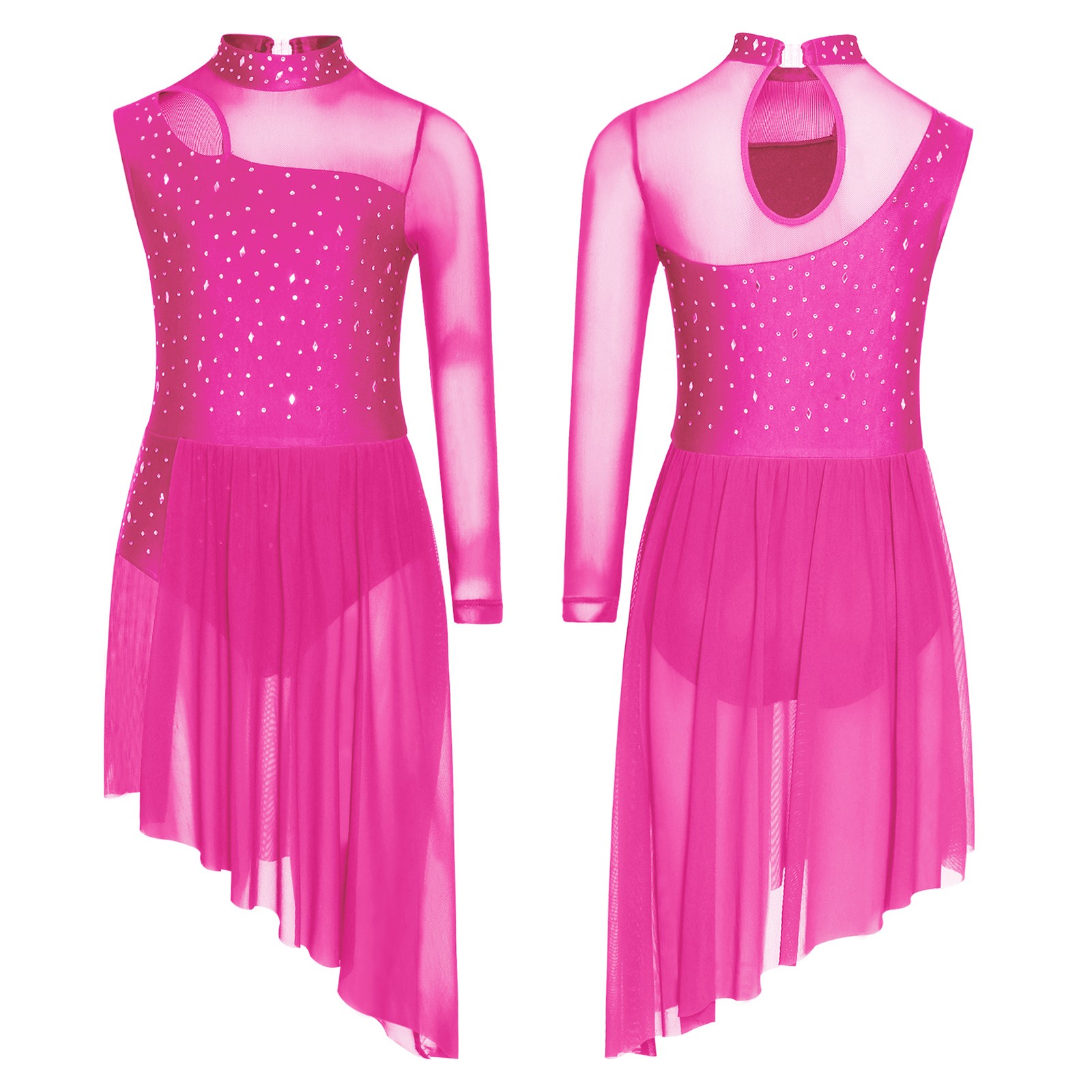 US Kids Girls Sparkly Dress Mesh Lyrical Ballet Dance Dress with Bult-in Briefs