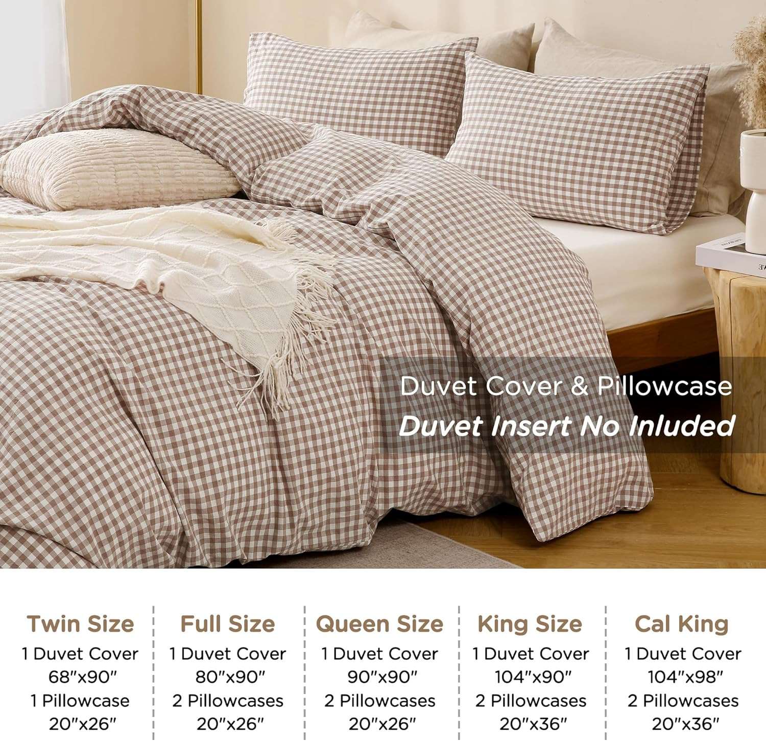 Tan Gingham Duvet Cover Bedding Set 100 Washed Cotton like Linen Feel Super Sof