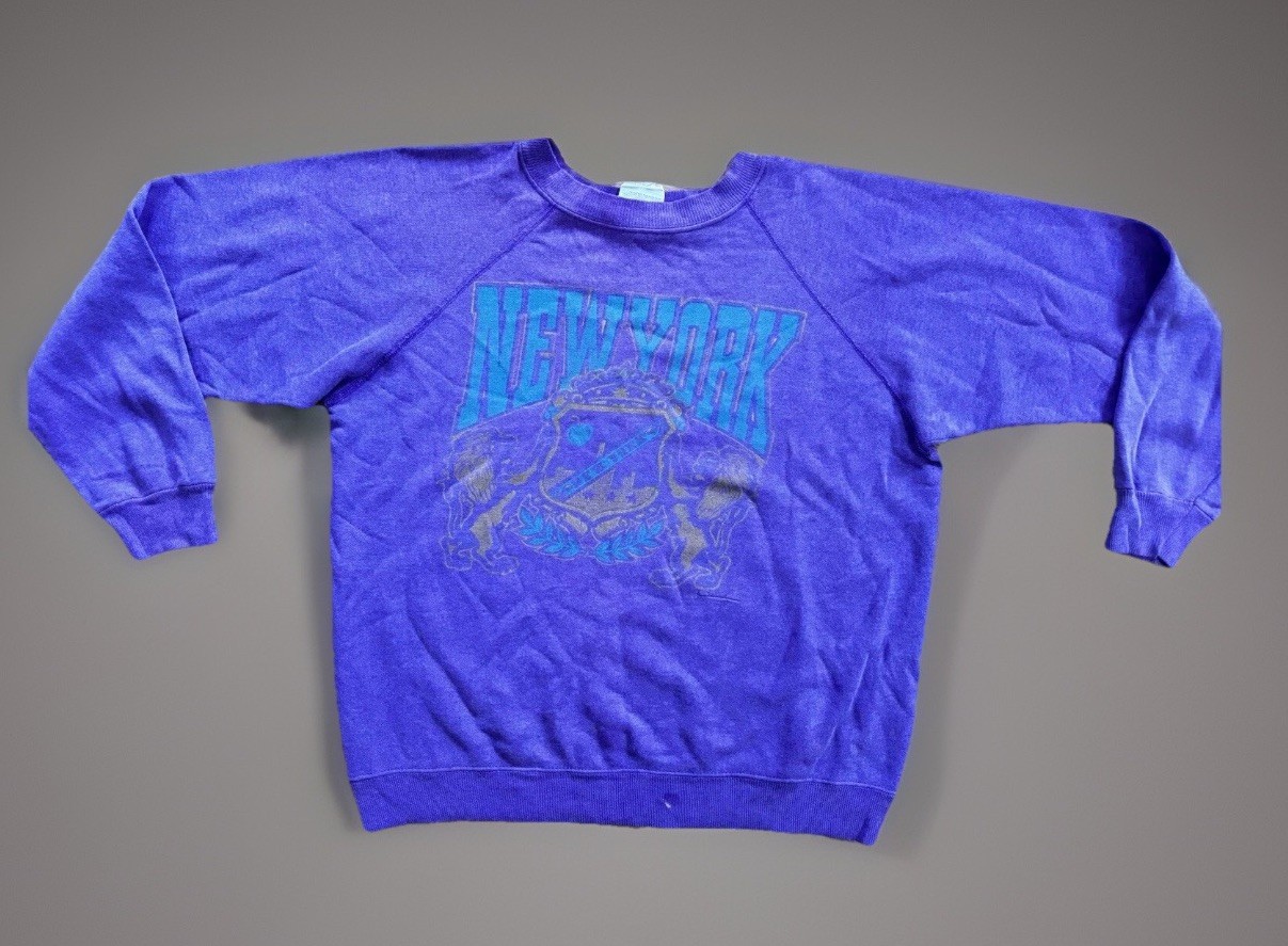 как выглядит 90s Faded Purple NYC Crewneck.M/L Unisex.made USA фото