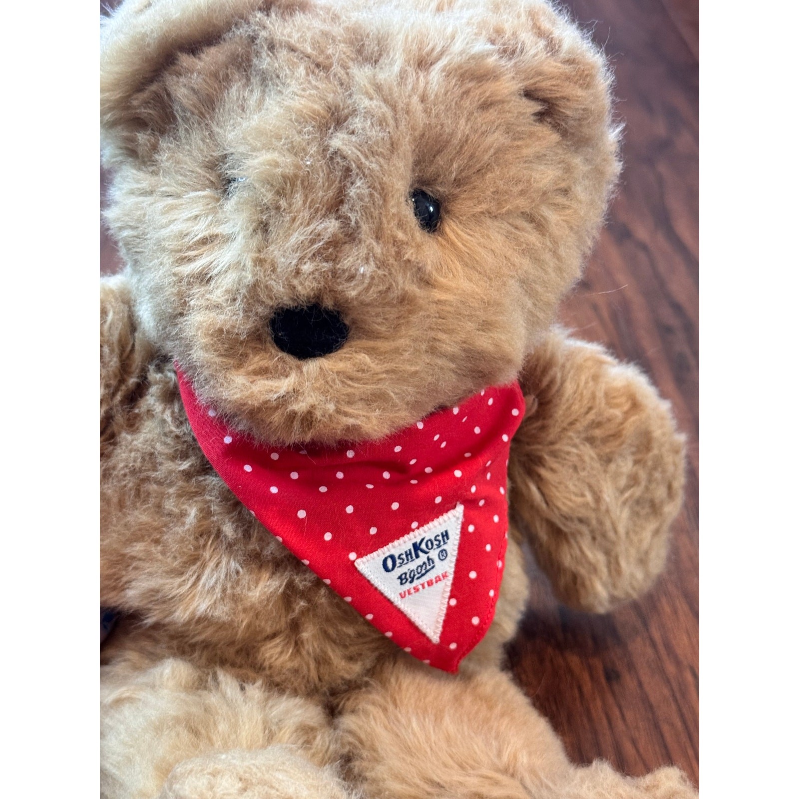как выглядит Vintage Eden Oshkosh BGosh Brown Teddy Bear 12" Plush 90s Red Bandana Stuffy фото