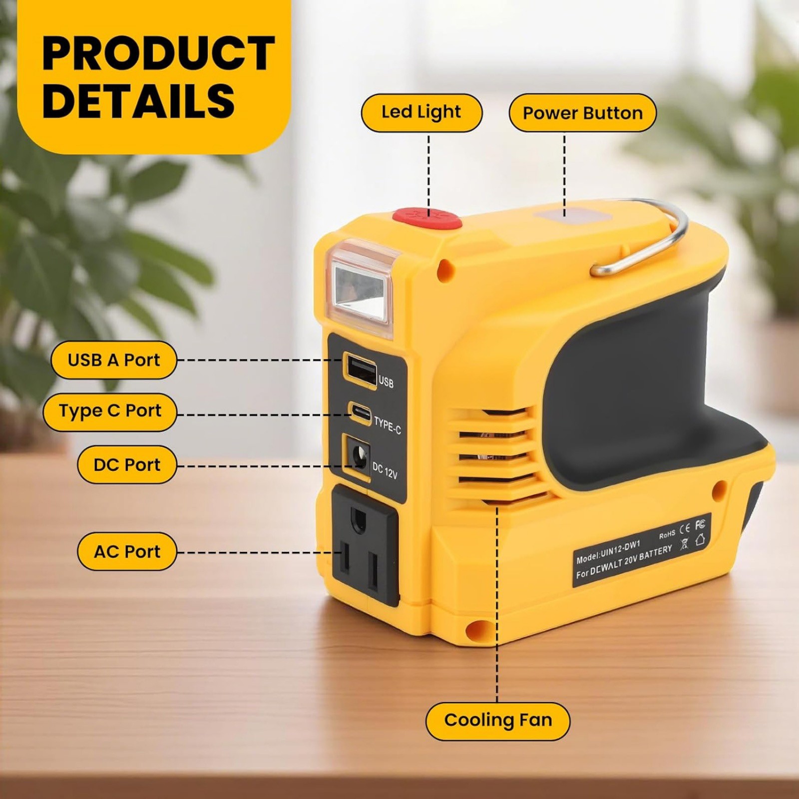 как выглядит New Power Inverter 220W for DeWalt 20V Battery with Overload Protection Feature фото