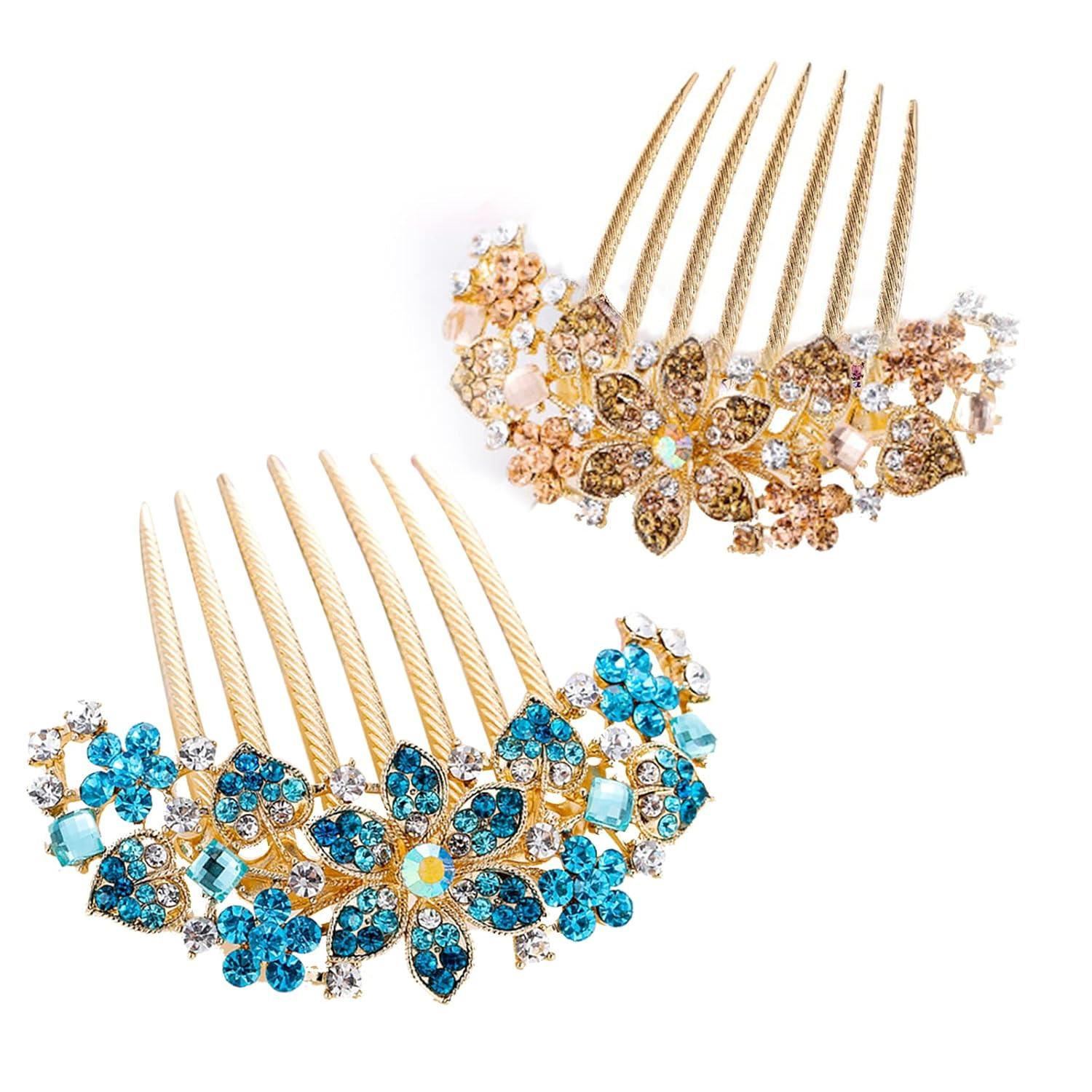 2 PCS Flower Bridal Hair Comb Rhinestone Barrette Hairpin for Women Decorativ...