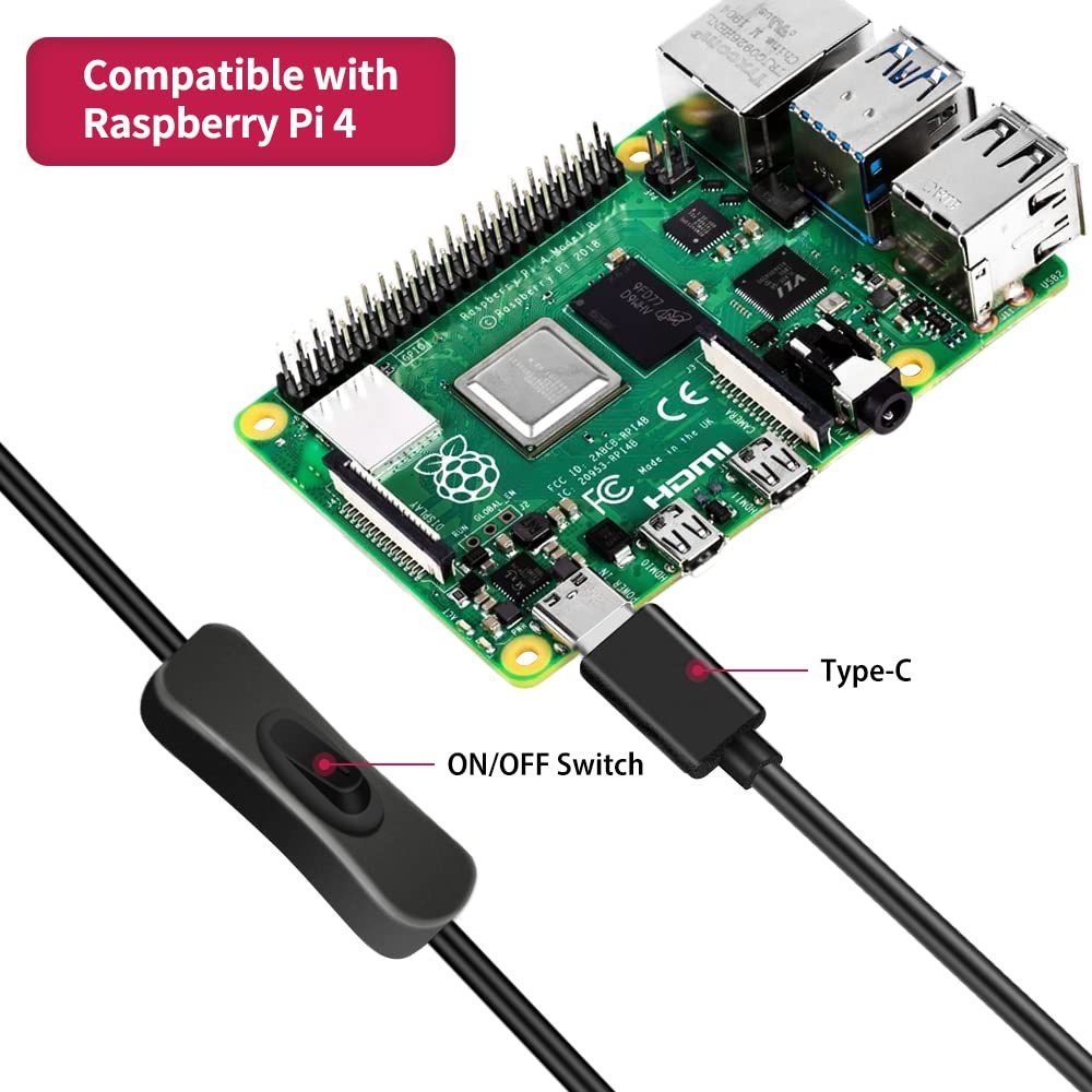 18W 5V 3.6A Power Supply for Raspberry Pi 4/Orange Pi 5 5B, with ON/Off Switc...