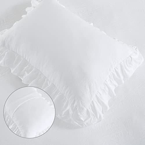 Ruffle Duvet Cover Queen Size, 3PCS Soft Washed Queen 90x90 White