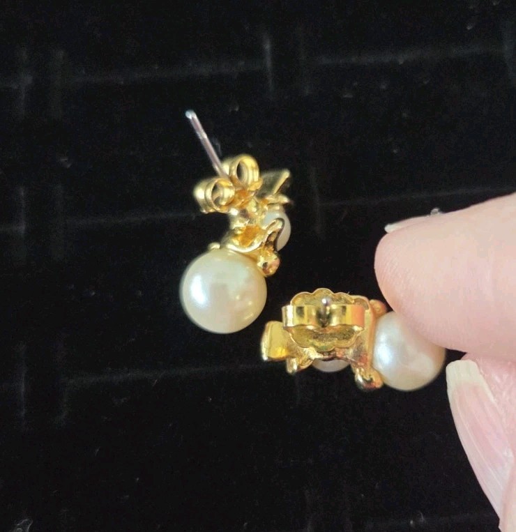 как выглядит Vintage Avon 1994 Gold Tone Faux Pearl Snowman Post Earrings CHRISTMAS фото
