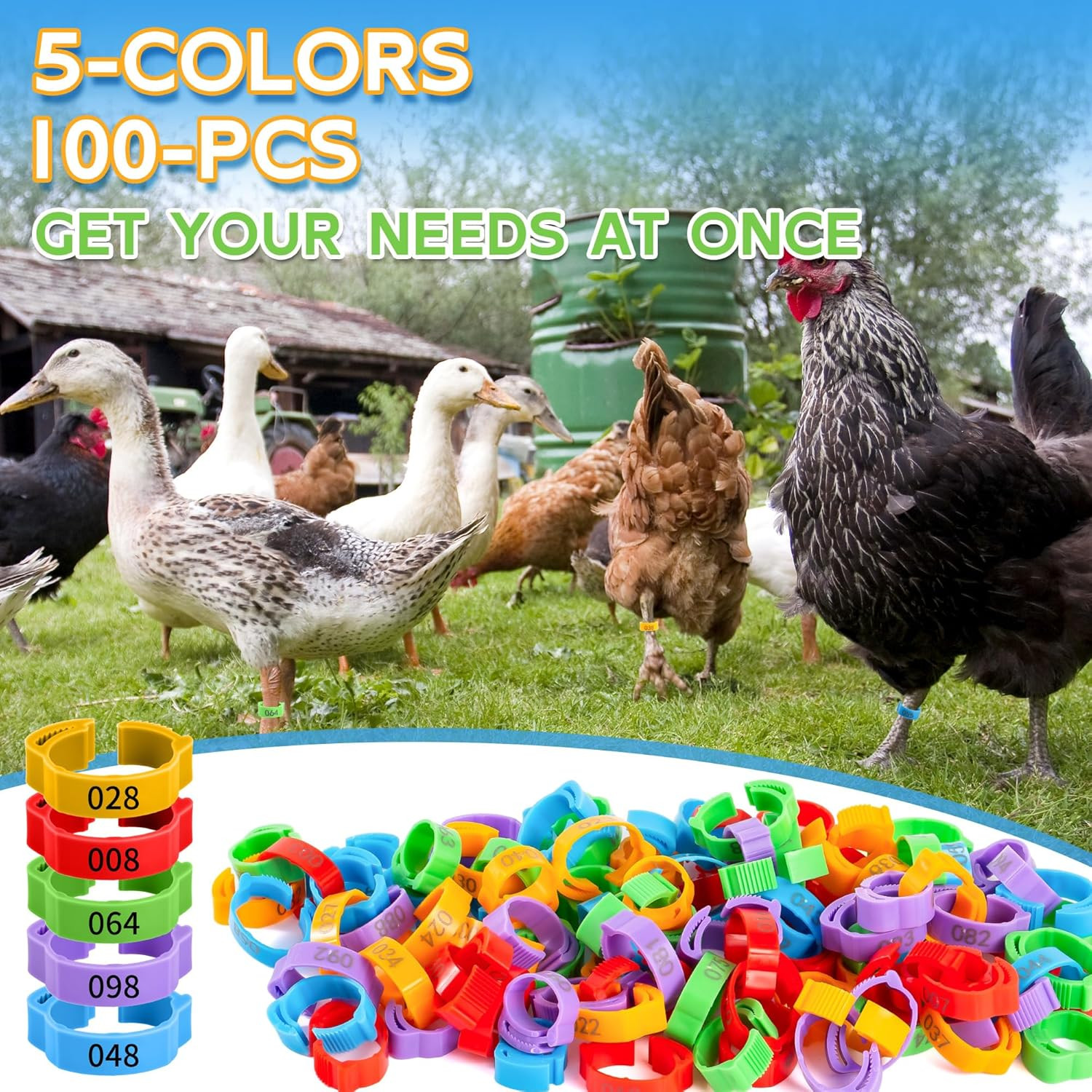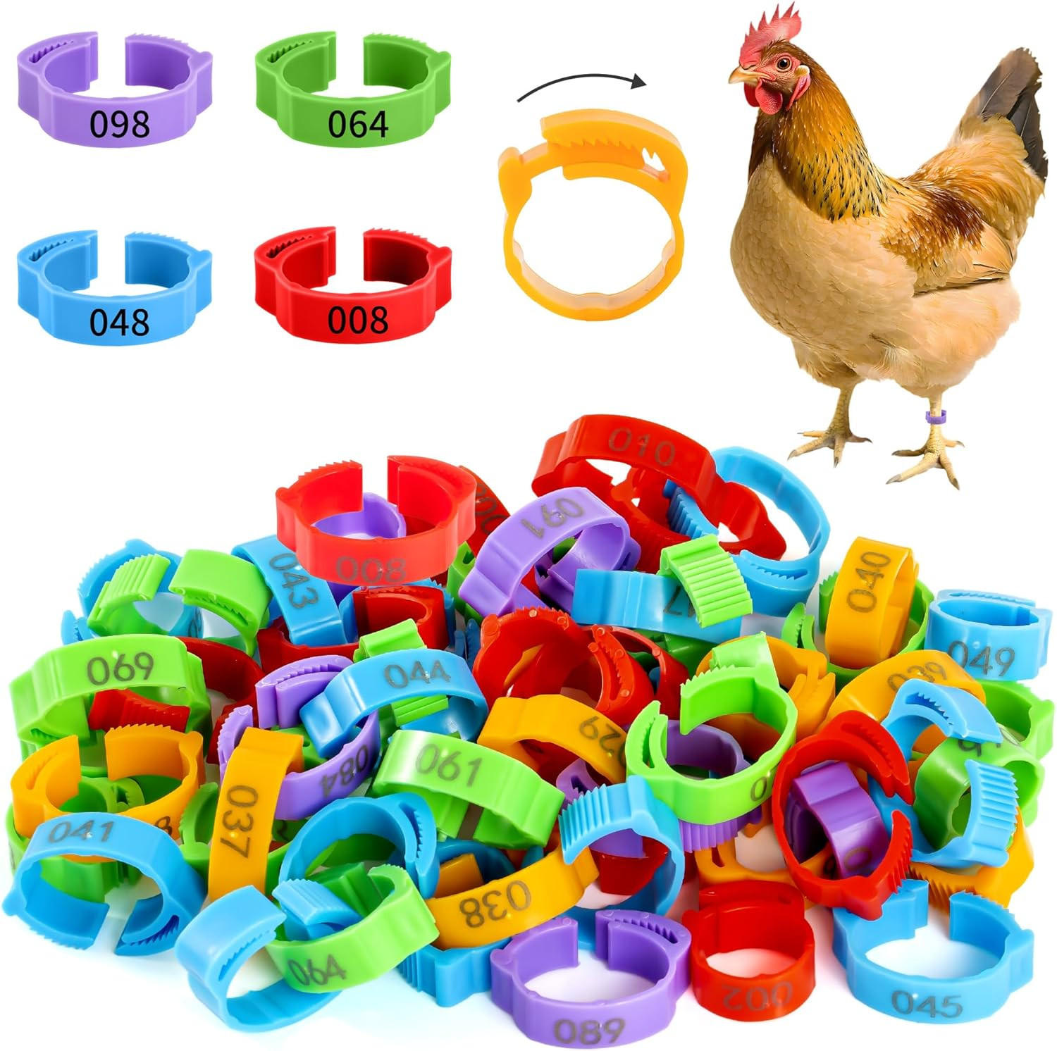как выглядит 100Pcs Chicken Leg Bands, 14-22Mm Adjustable Poultry Tags, Durable Multi-Colored фото