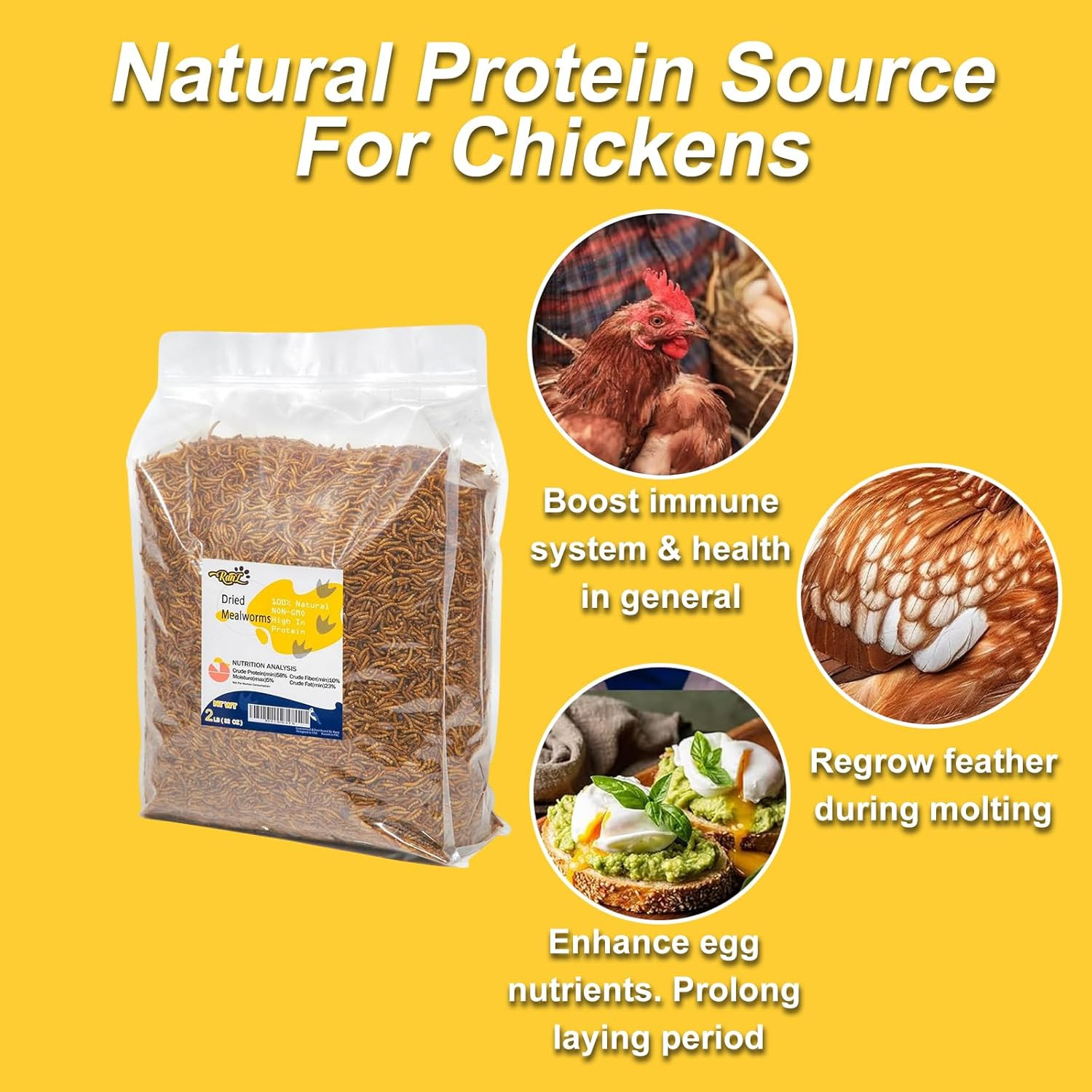 2LBS Non-Gmo Dried Mealworms for Chickens, High Protein Meal Worms, Premium Chic