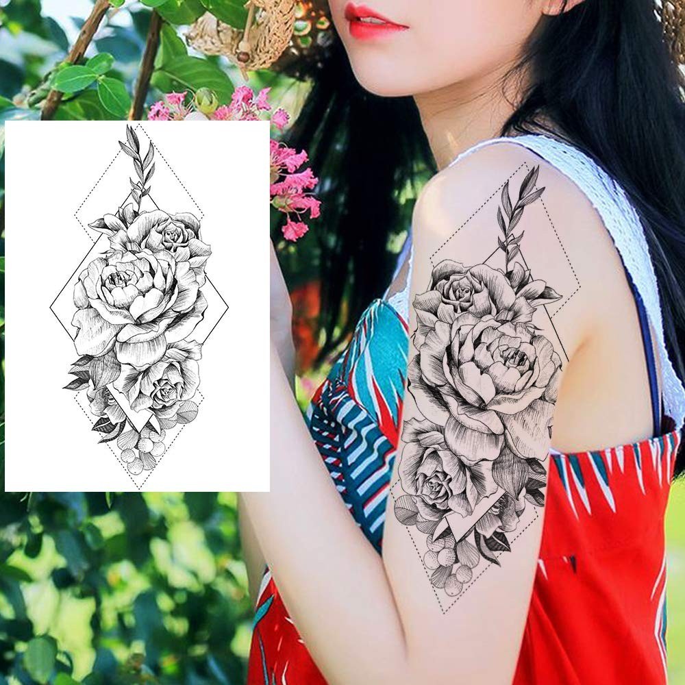 как выглядит 6 Pieces/Lot 3D Realistic Large Black Rose Flower Temporary Tattoos For Women... фото