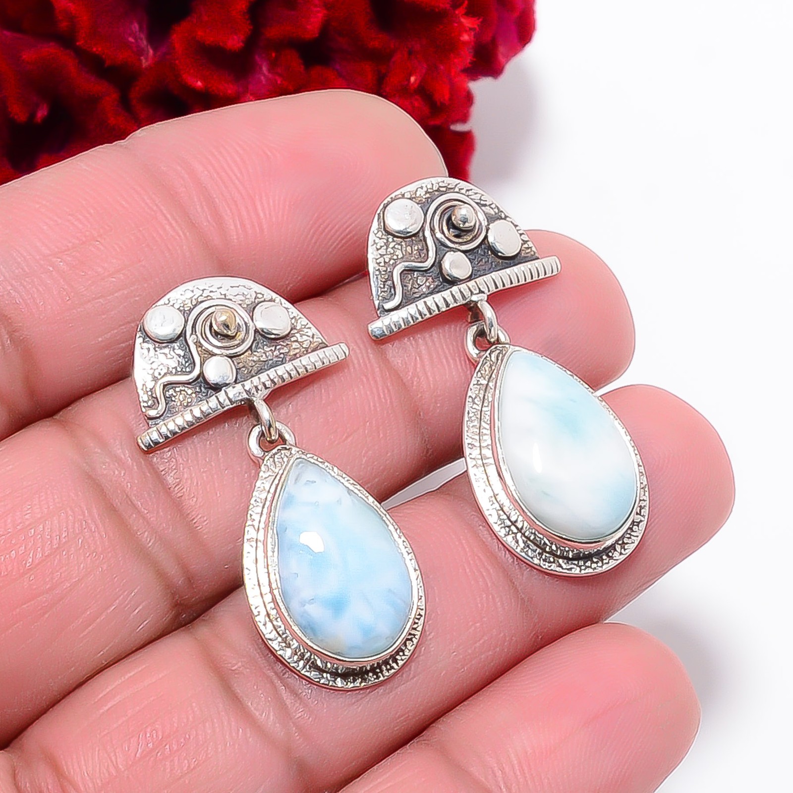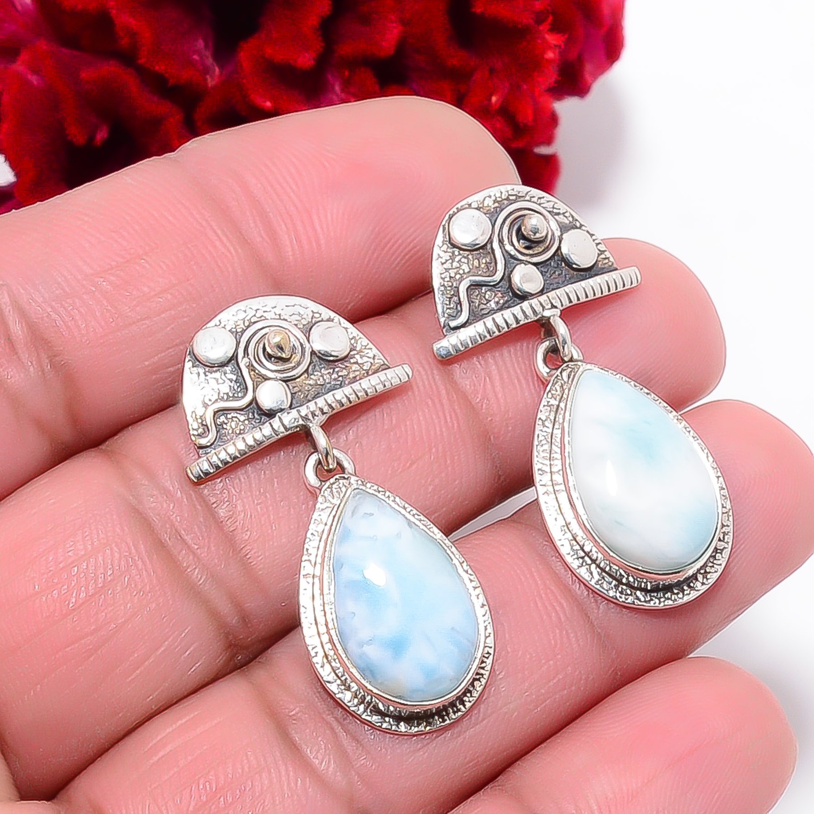 как выглядит Natural Larimar Designer Handmade 925 Sterling Silver Earring 1.56" E99013 фото