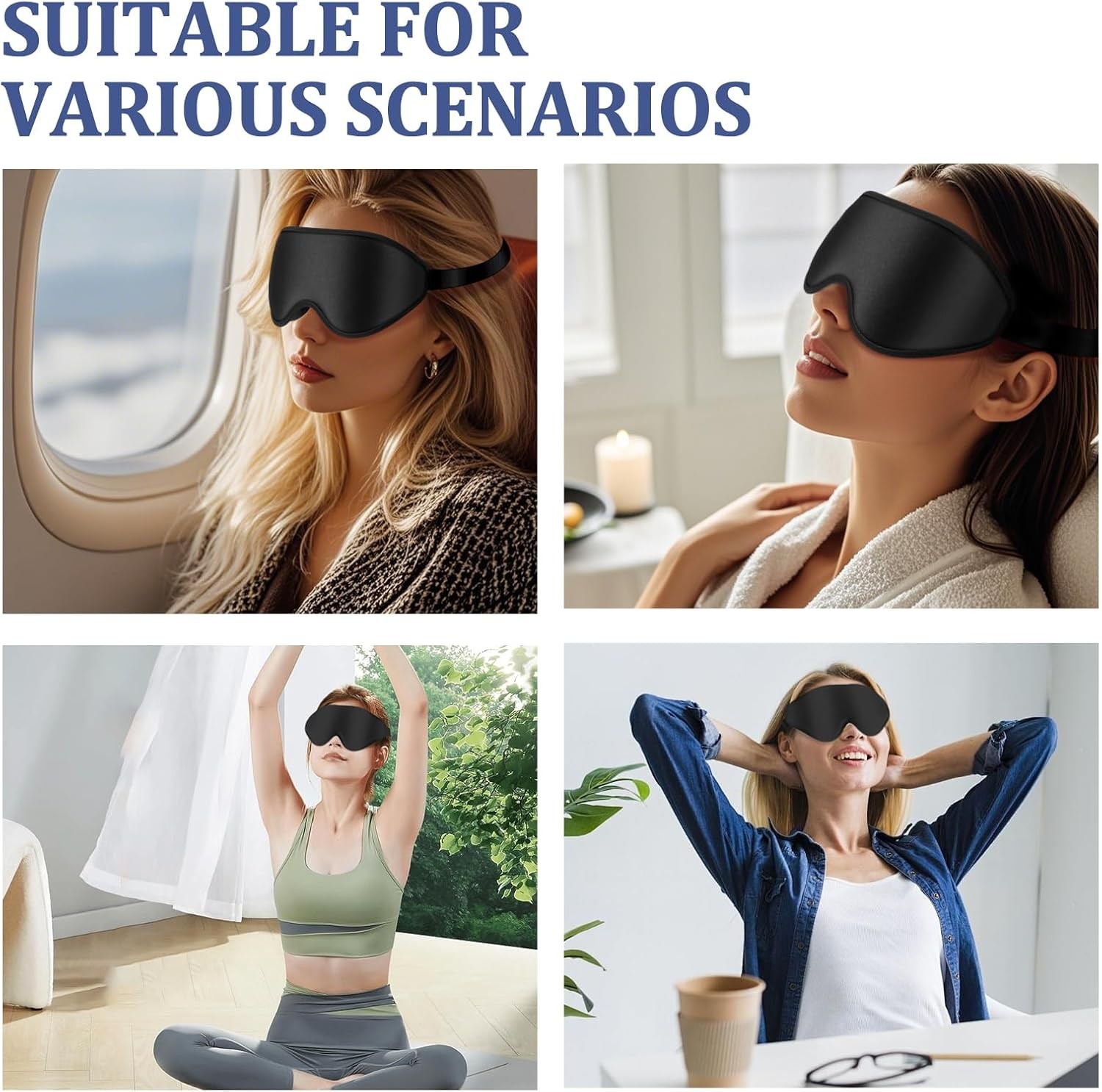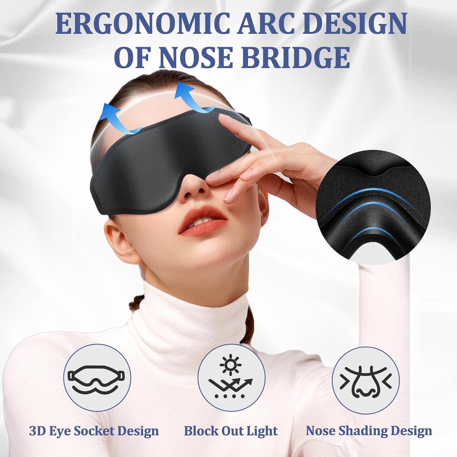 3D Deep Contoured Zero Pressure Sleep Eye Mask for Men Women, Blackout Blindfo