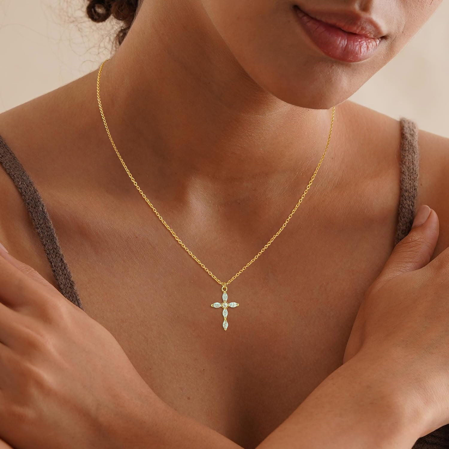 как выглядит Cross Necklace for Women, 14K Gold Cross Necklaces for Women Trendy Dainty Gold фото