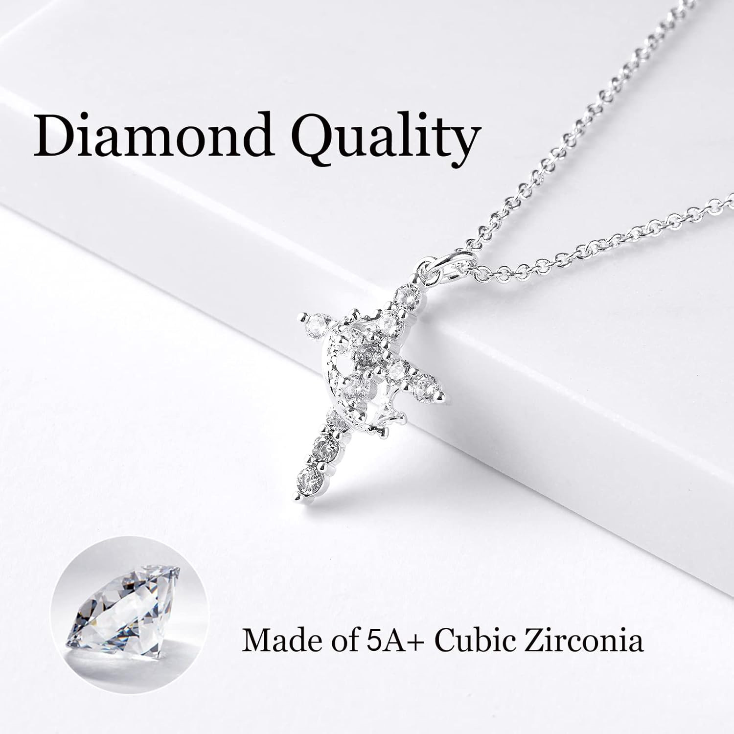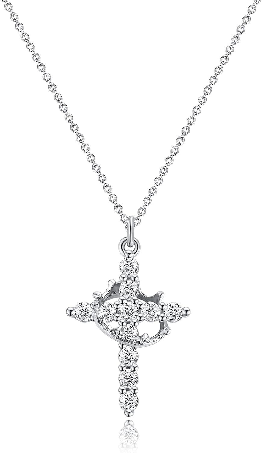 Цвет: cz silver crown cross necklace
