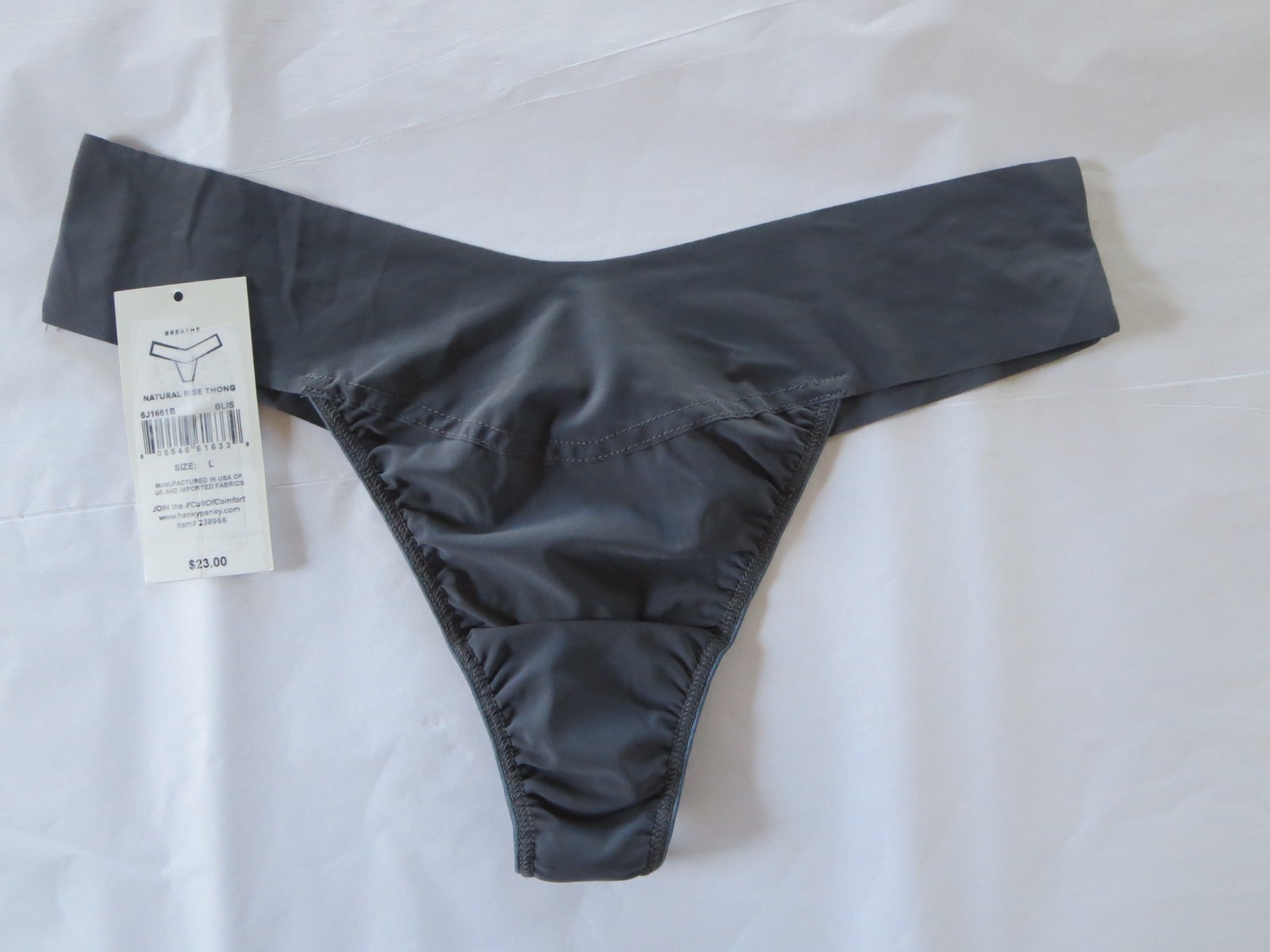 HANKY PANKY BREATHE NATURAL RISE THONG PANTY 6J1661B, GRANITE, LARGE, NWT 23