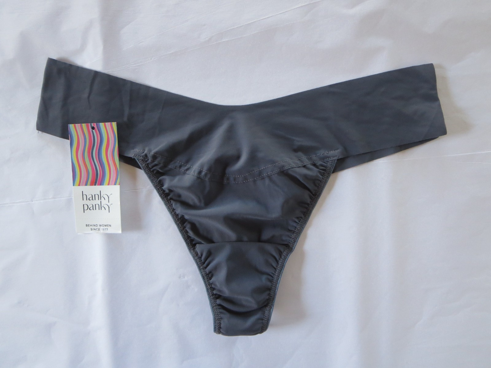 как выглядит HANKY PANKY BREATHE NATURAL RISE THONG PANTY 6J1661B, GRANITE, LARGE, NWT 23 фото