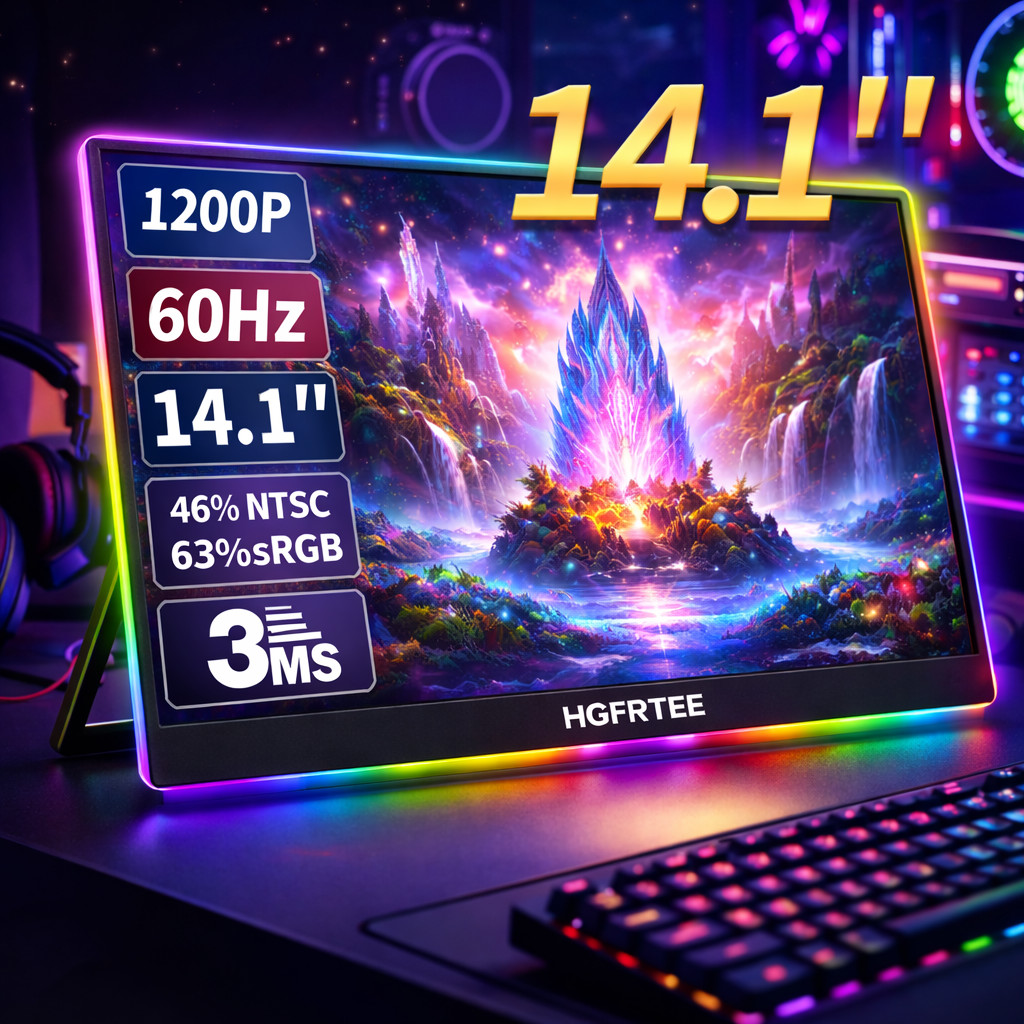 HGFRTEE 14.1 Portable Monitor 1920x1200 FHD IPS Laptop Second Screen HDMI