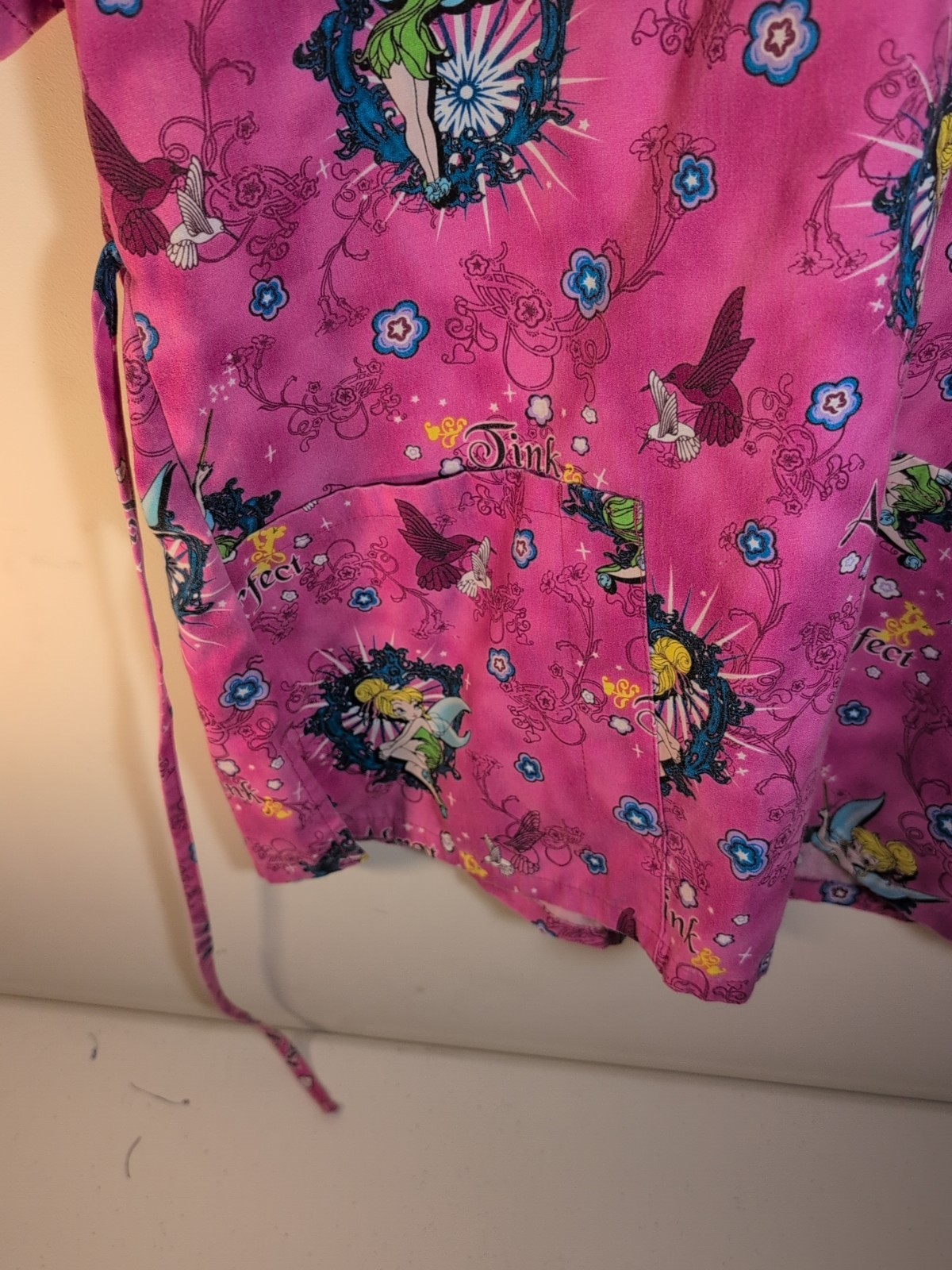 как выглядит Disney Pink Medium Scrub Top Tinkerbell Peter Pan Almost Perfect Short Sleeve фото