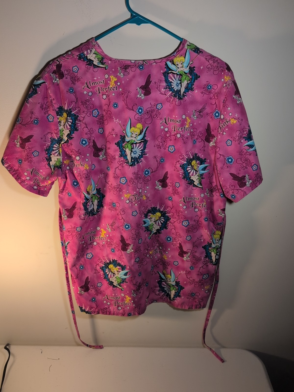 Disney Pink Medium Scrub Top Tinkerbell Peter Pan Almost Perfect Short Sleeve