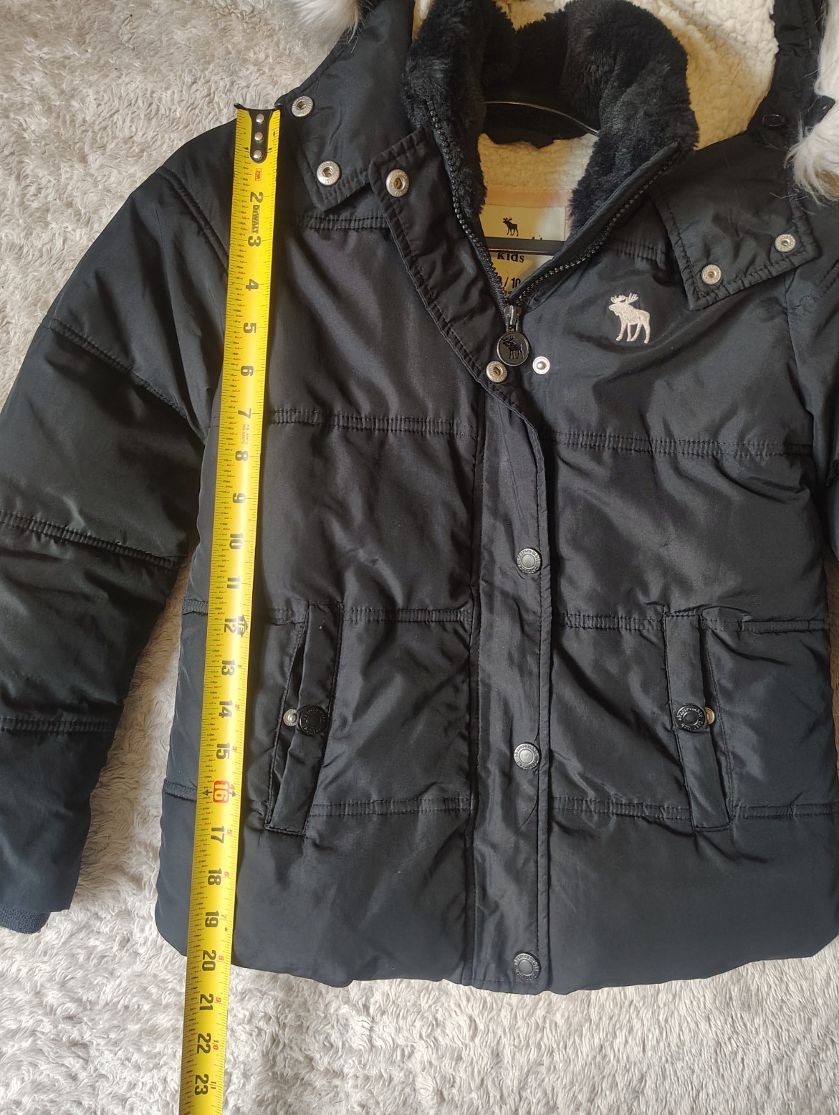 как выглядит Abercrombie Kids Black puffer jacket W/ Furr Hood Sz 9/10 Great condition фото