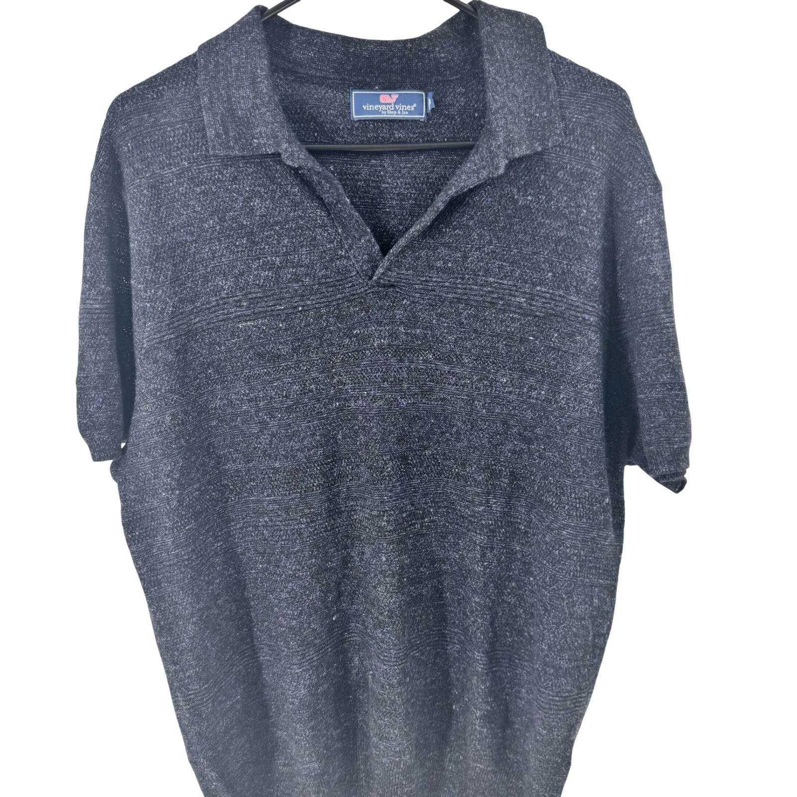 как выглядит Vineyard Vines Mens Medium Navy Blue Linen Blend Short Sleeve Polo Shirt фото