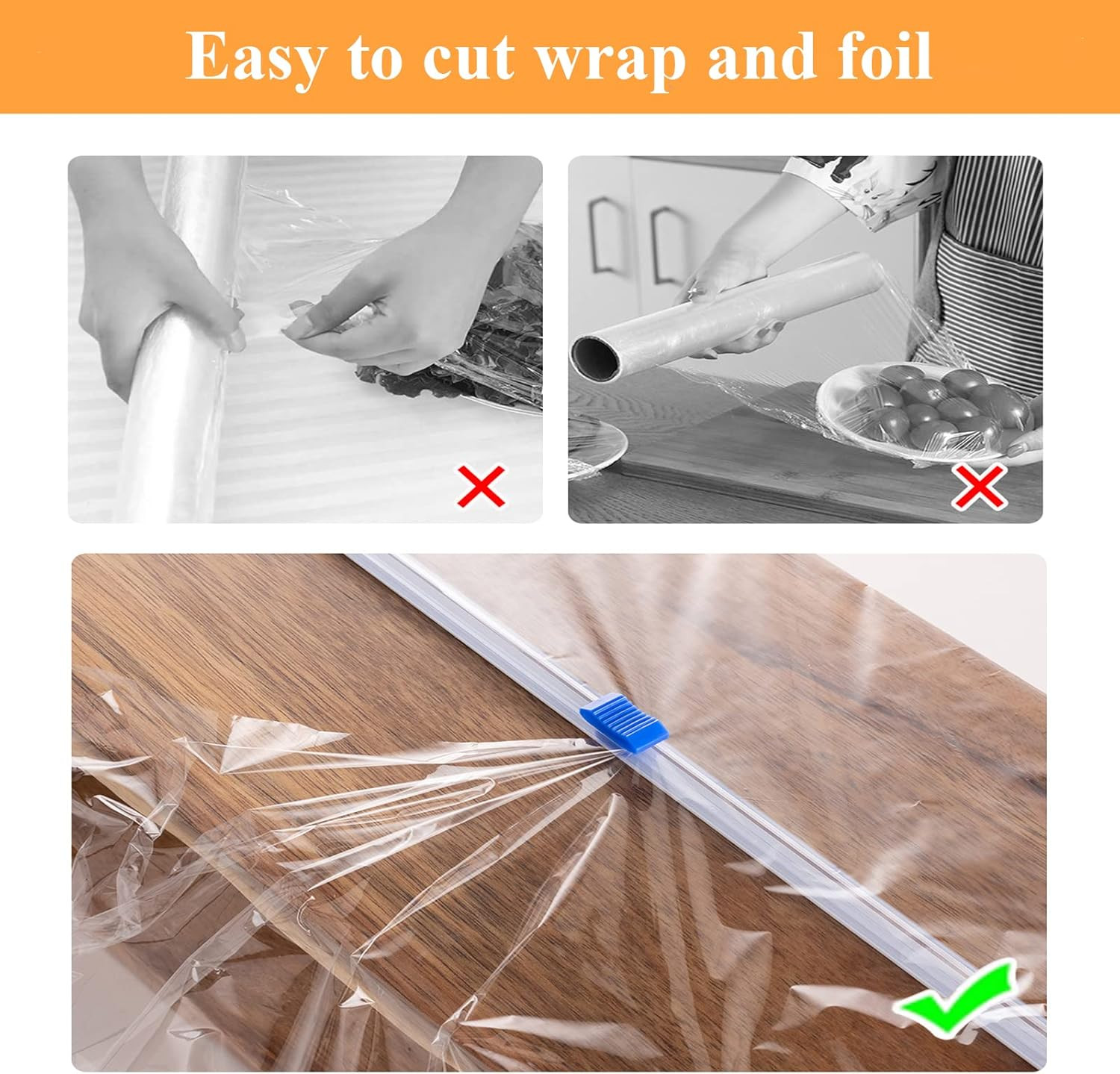 Plastic Wrap Cutter Slide Cutter - 4 Sticks 15 Self-Adhesive Cling Film Slide C