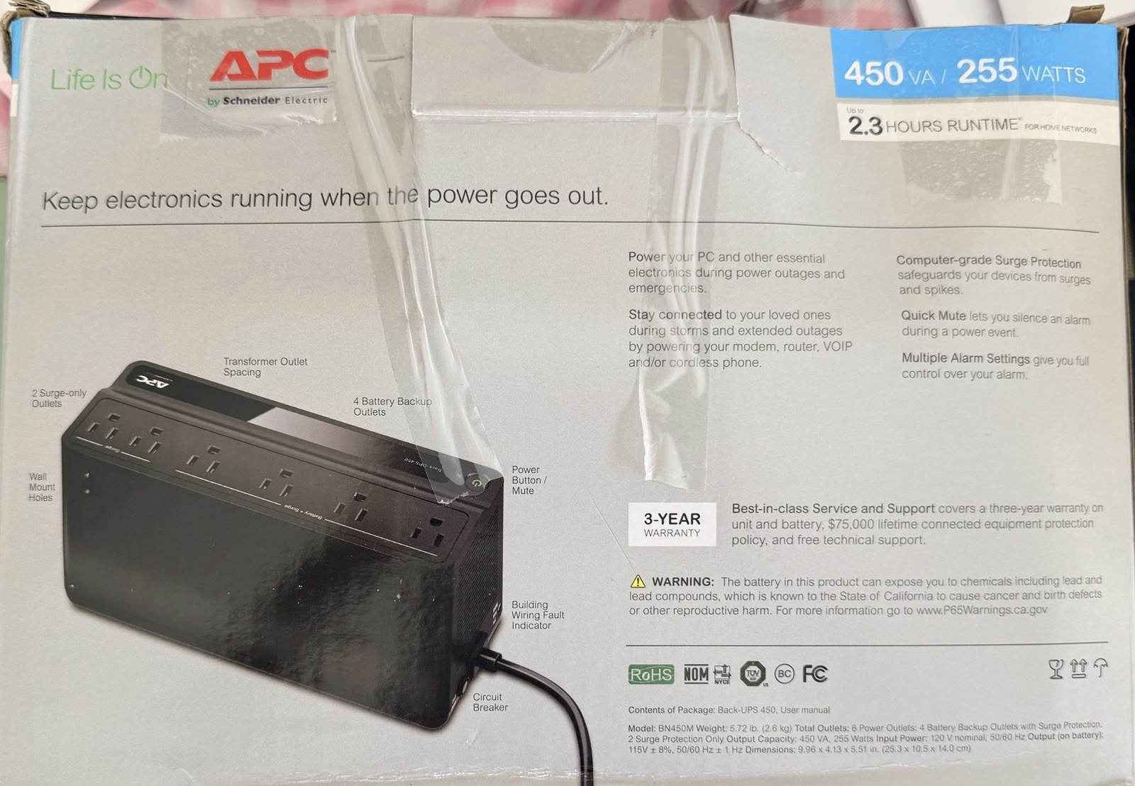 APC by Schneider Battery Back-up Surge Protection Model BN450M 450VA/ 255 Watts