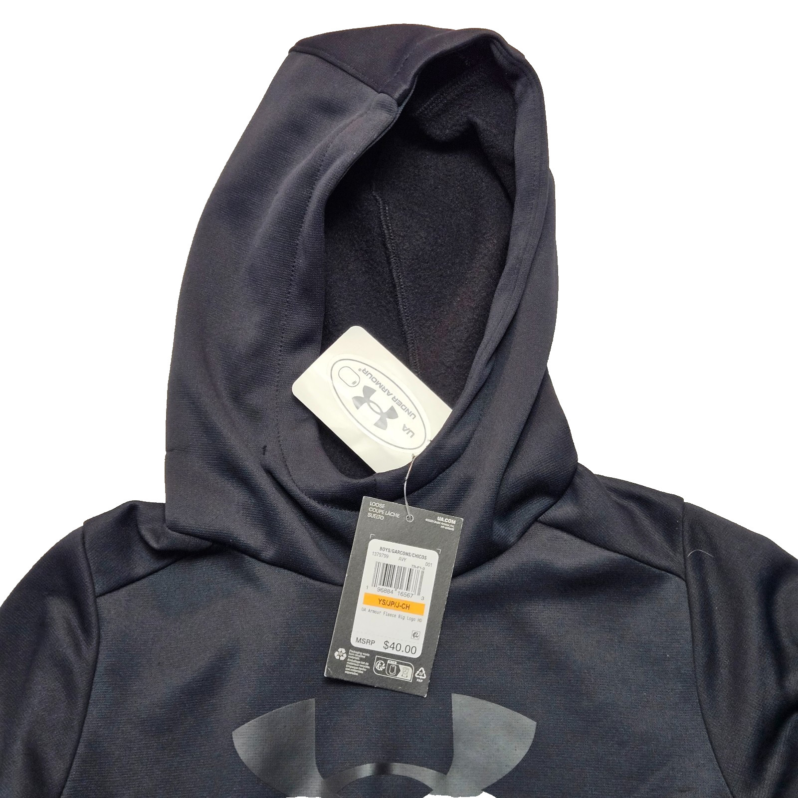 как выглядит Shirt Hoodie Black Fleece Big Logo Soft Pocket Boys S By Under Armour MSRP 40.00 фото