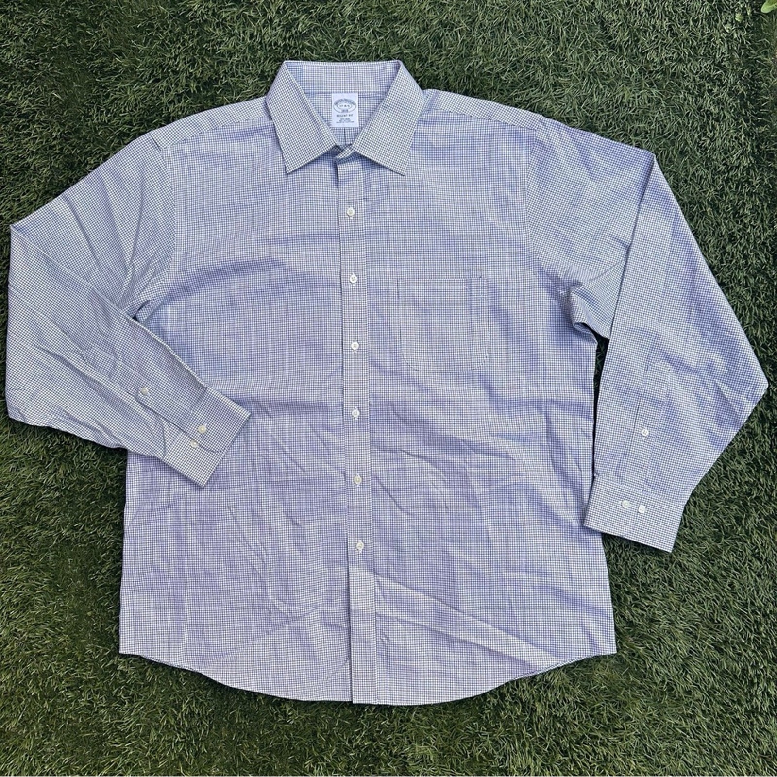 как выглядит Brooks Brothers Mens Non-Iron All Cotton Regent Fit Button Up Dress Shirt 17-4/5 фото