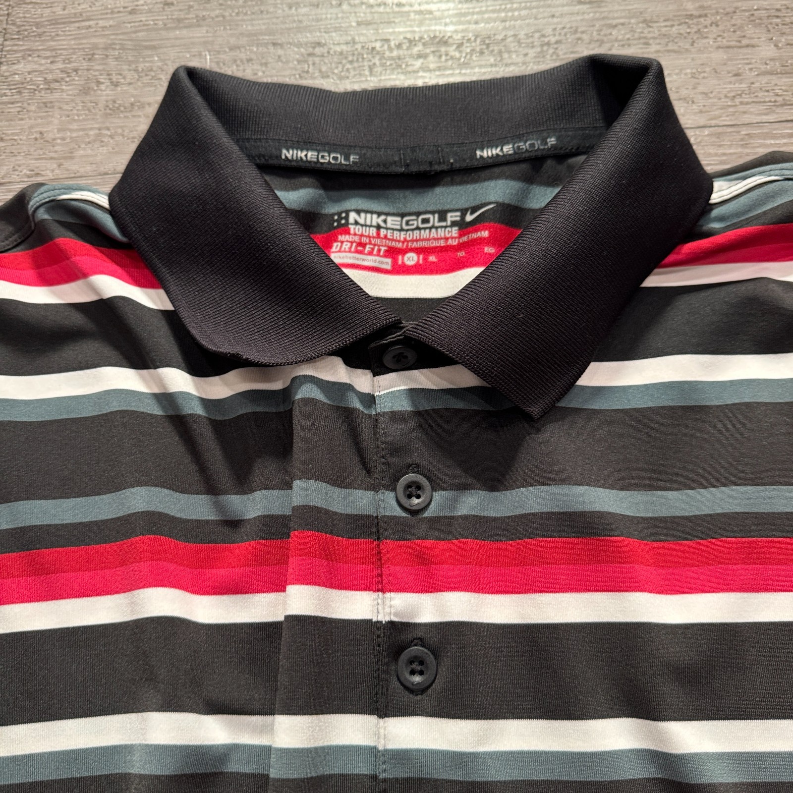 Nike Polo Shirt Mens XL Black Red Stripe Tour Performance Golf Casual Outdoor
