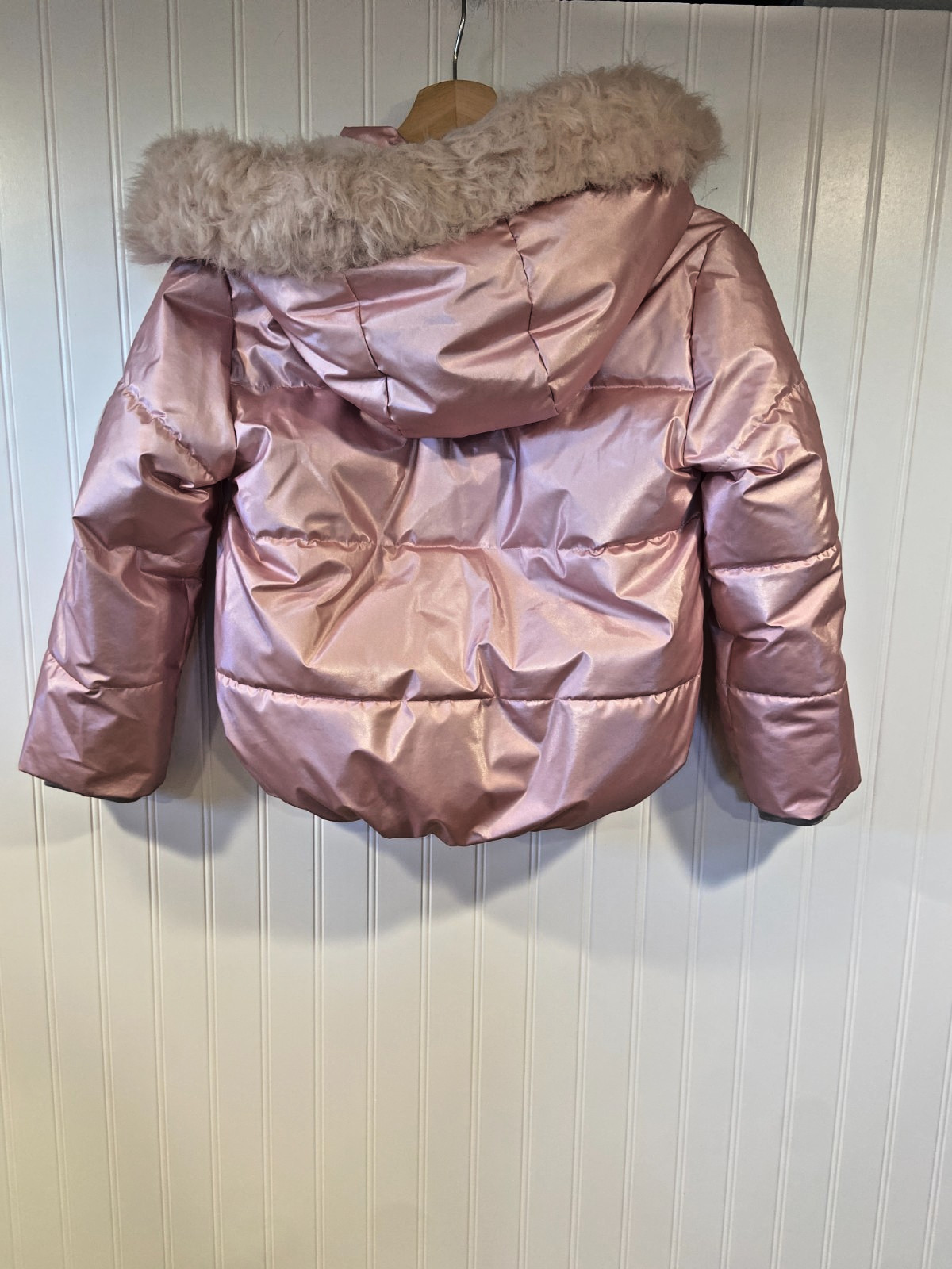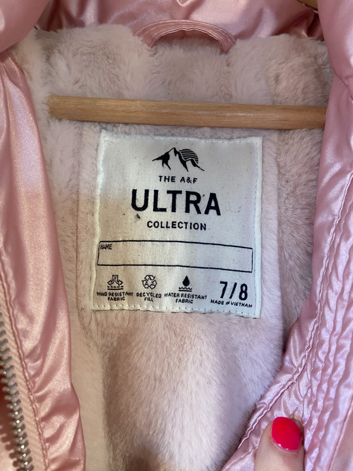 как выглядит Abercrombie Fitch Puffer Jacket Girls 7/8 Pink A F Ultra Faux Fur Parka Hood фото