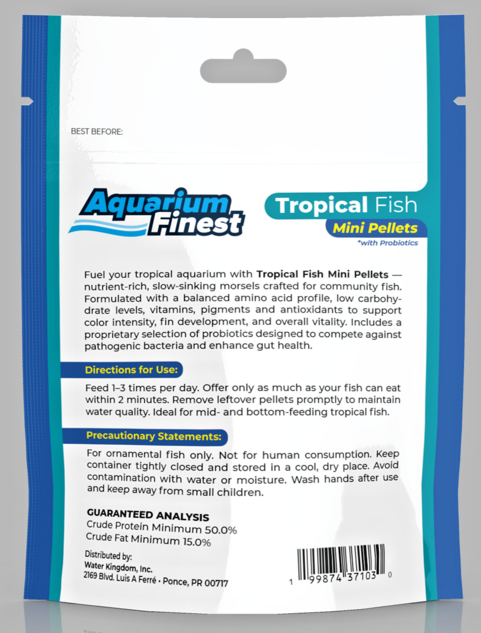 Aquarium Finest Tropical Fish Mini Pellets w/ Spirulina Wheat Germ 4.8oz Pouch