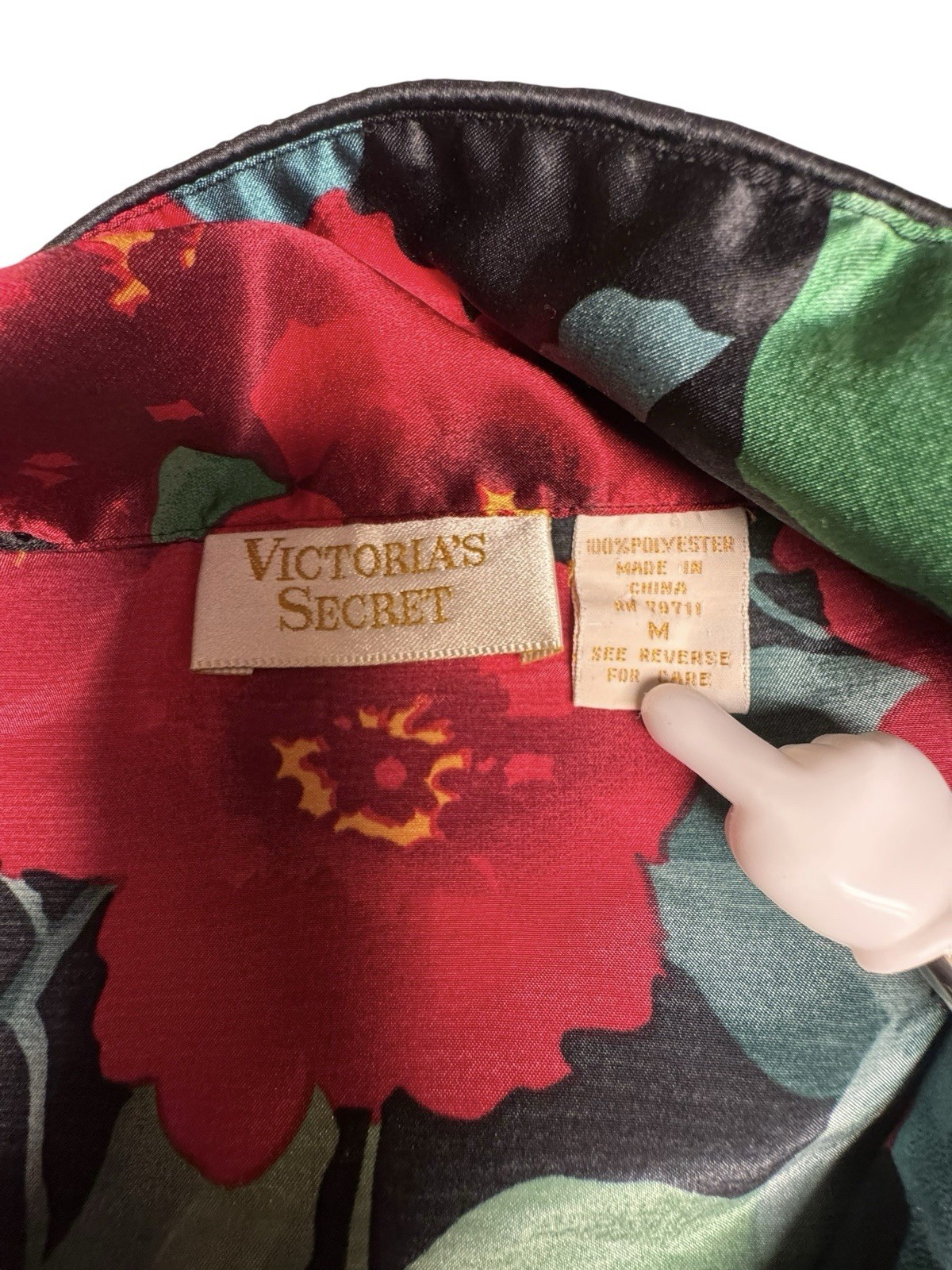 Vintage Victoria s Secret Gold Label Satin Pajama Set Floral Red Roses Women M