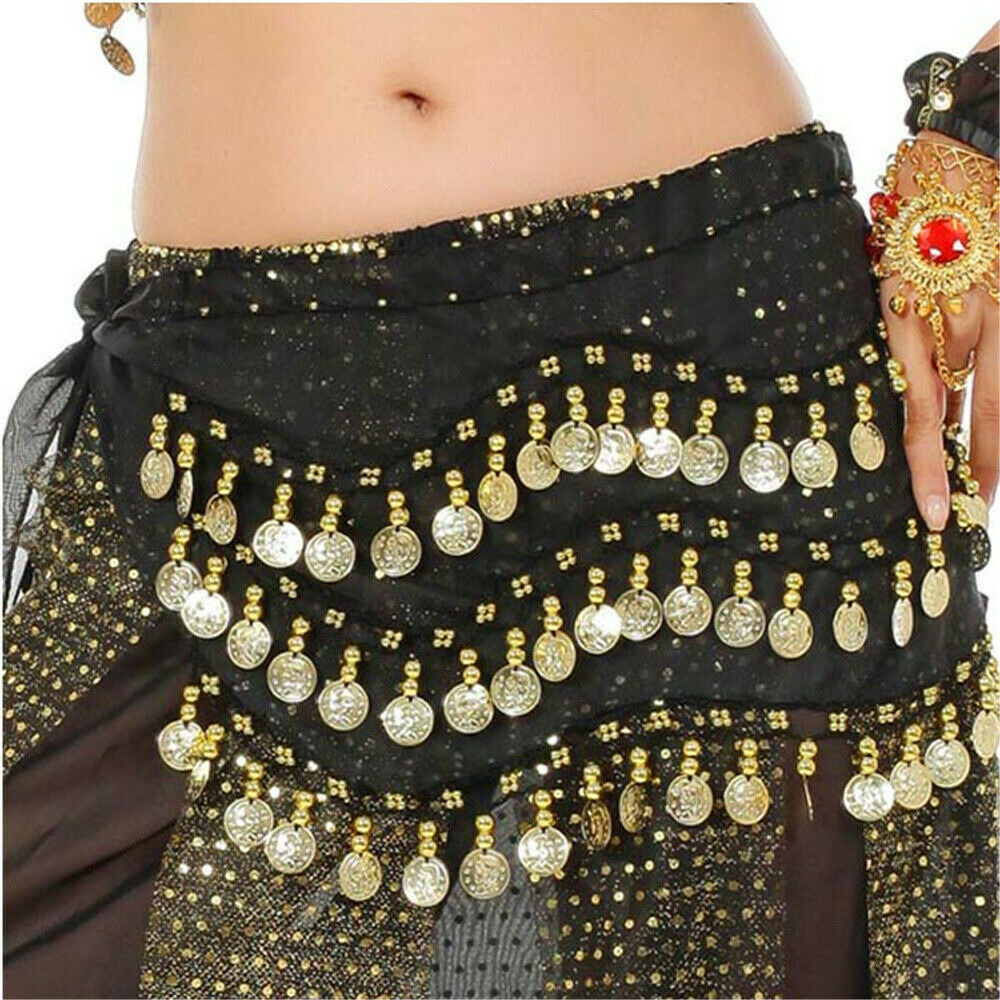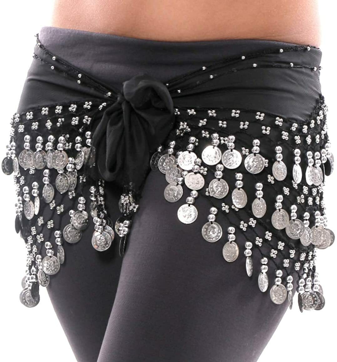 Belly Dance Skirt Hip Scarf with Gold Coin Silver Coin Skirts Wrap Noisy US FAST
