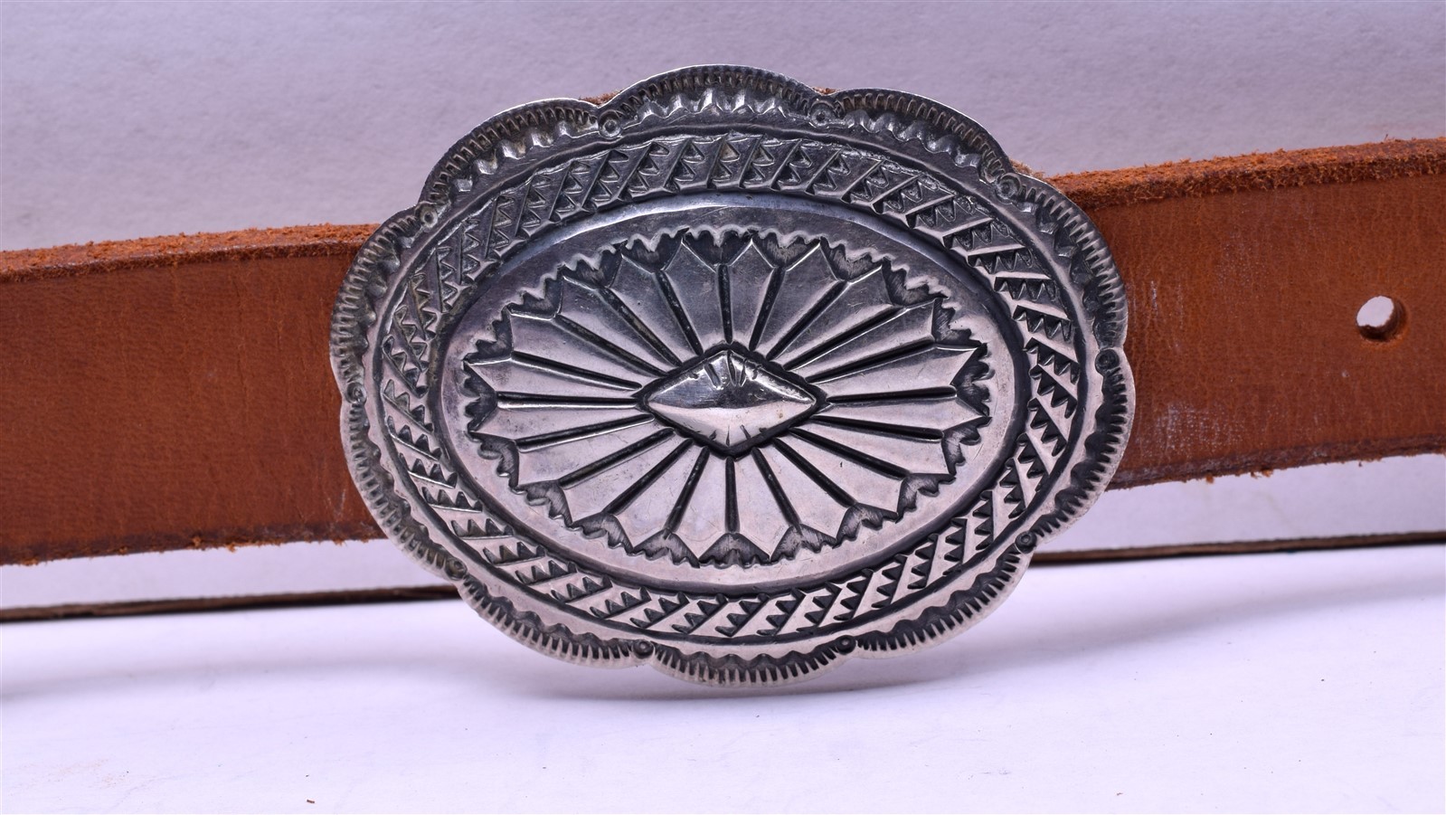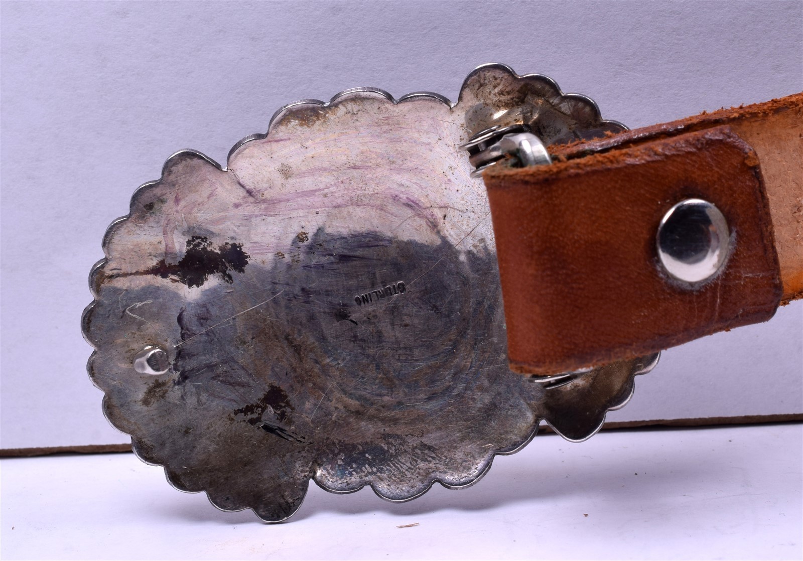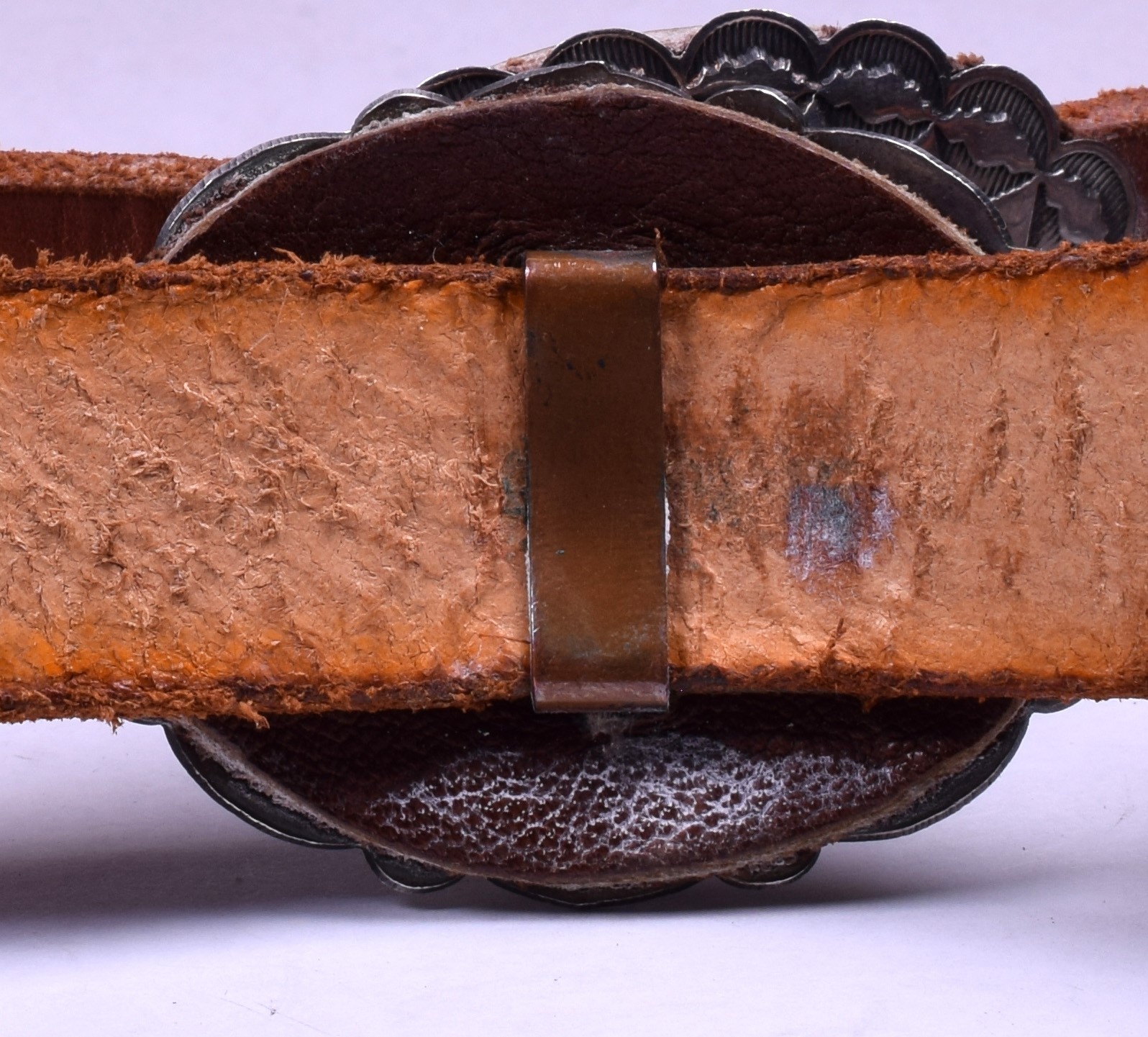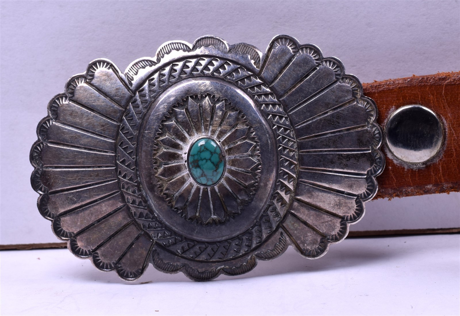 как выглядит Vintage Sterling Green Turquoise Concho Buckle Leather Belt 13 Different Conchos фото