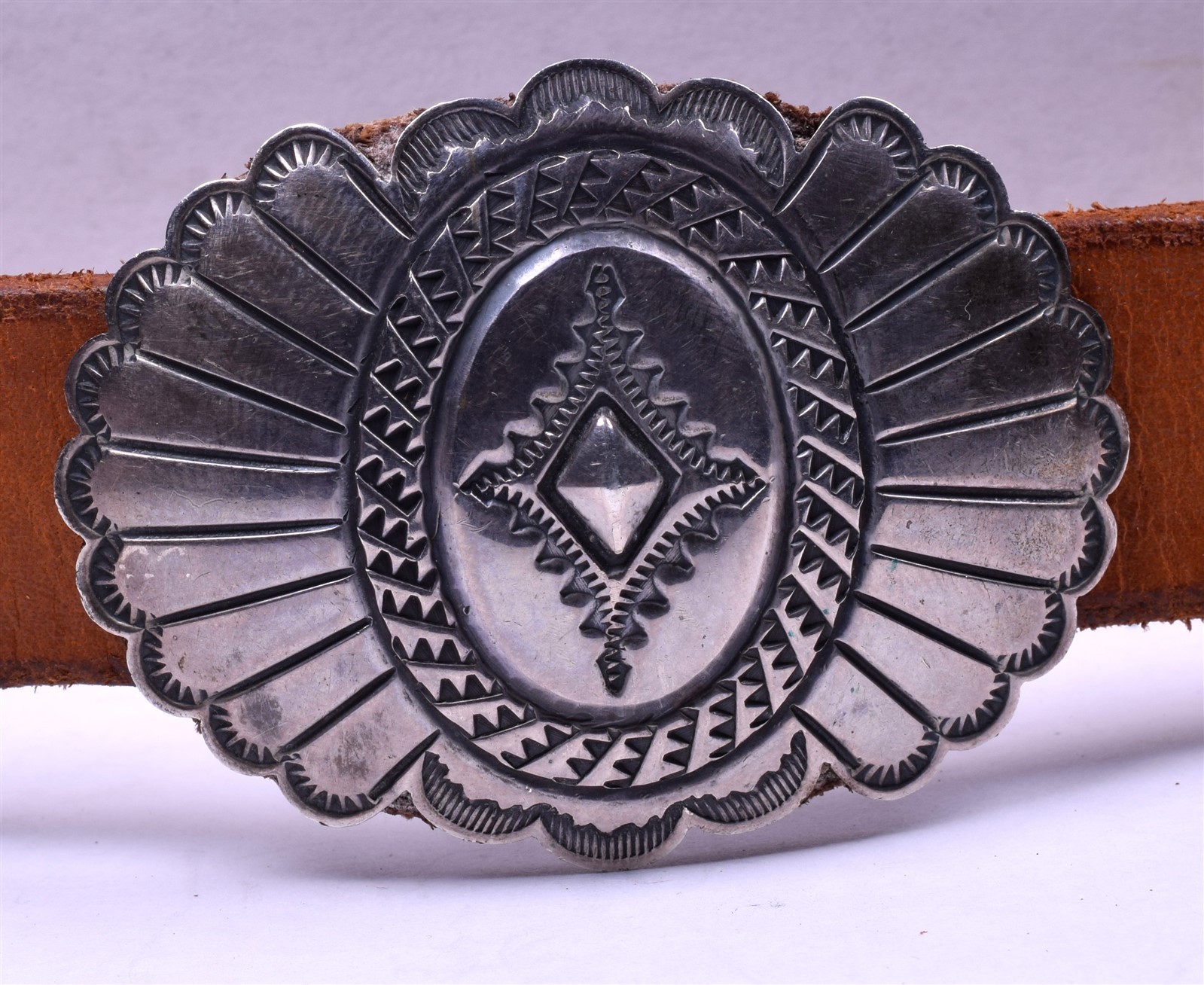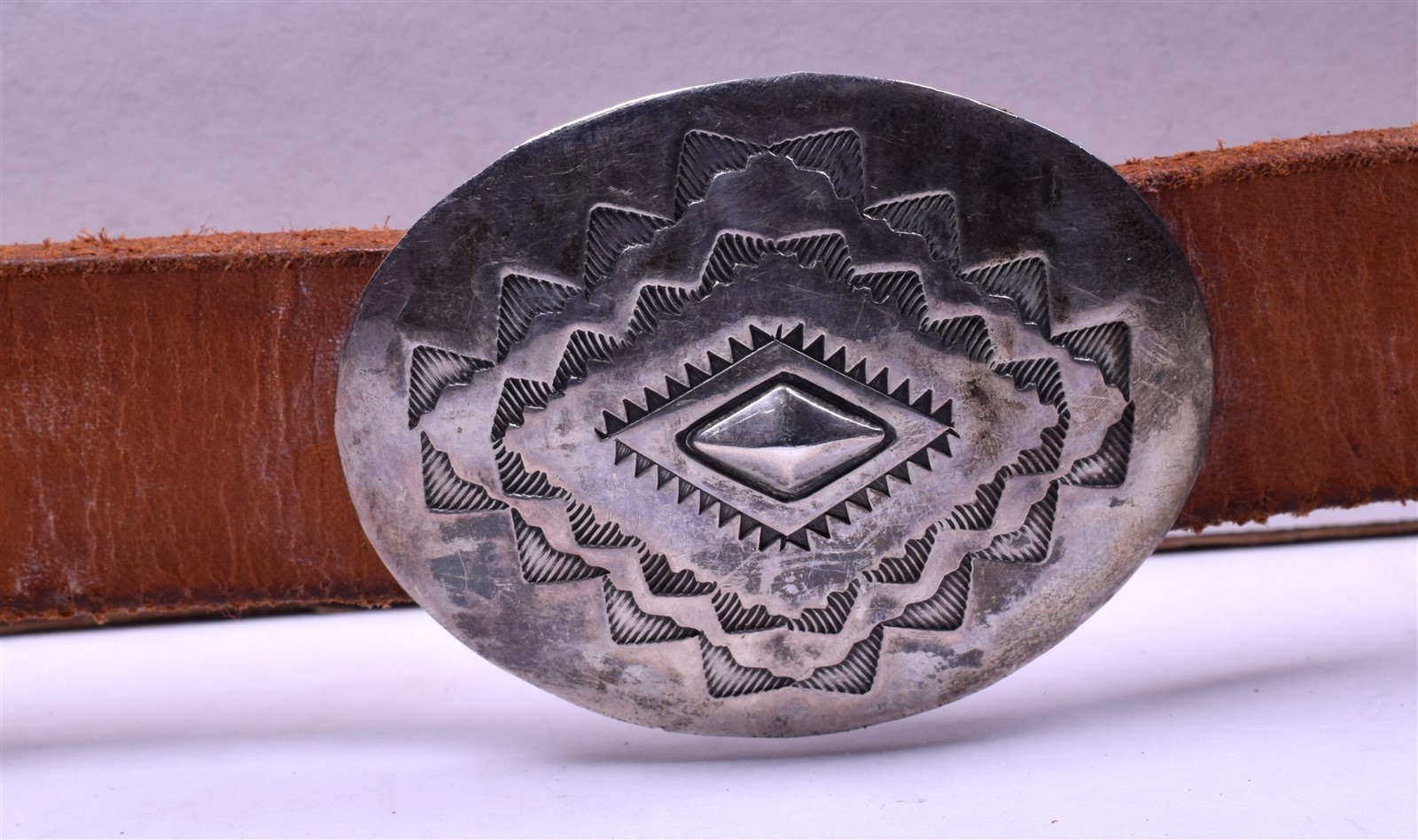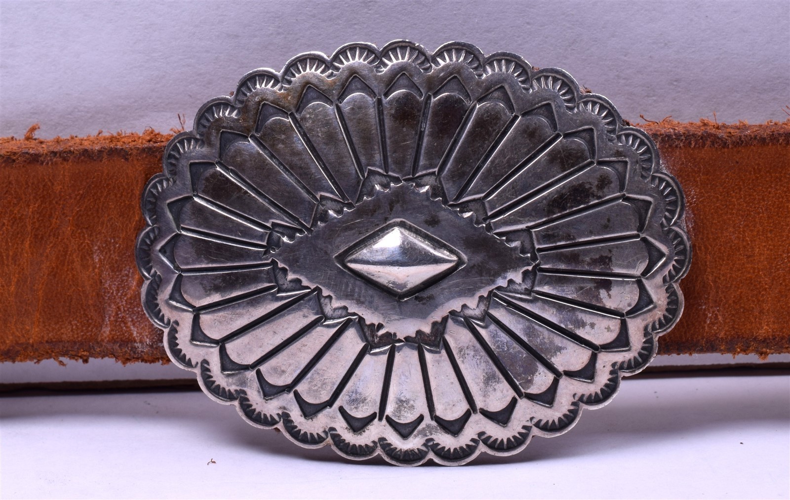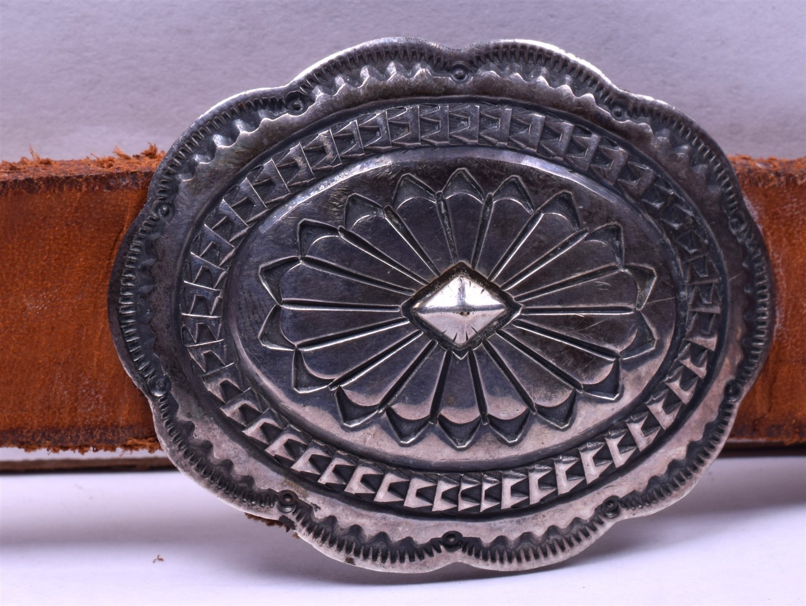 как выглядит Vintage Sterling Green Turquoise Concho Buckle Leather Belt 13 Different Conchos фото