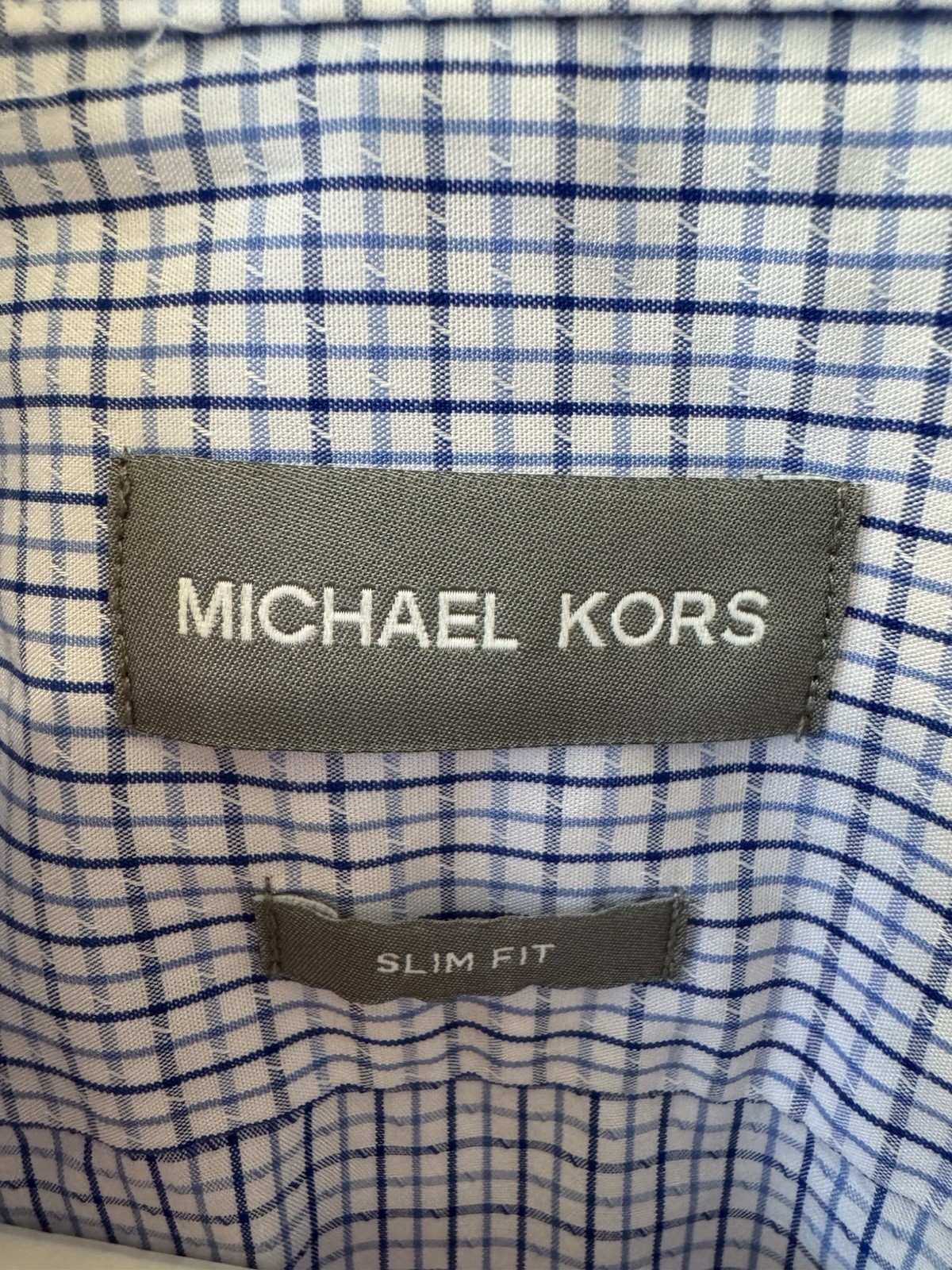 Michael Kors Dress Shirt Men Large Blue Plaid Slim Fit Stretch Button Down