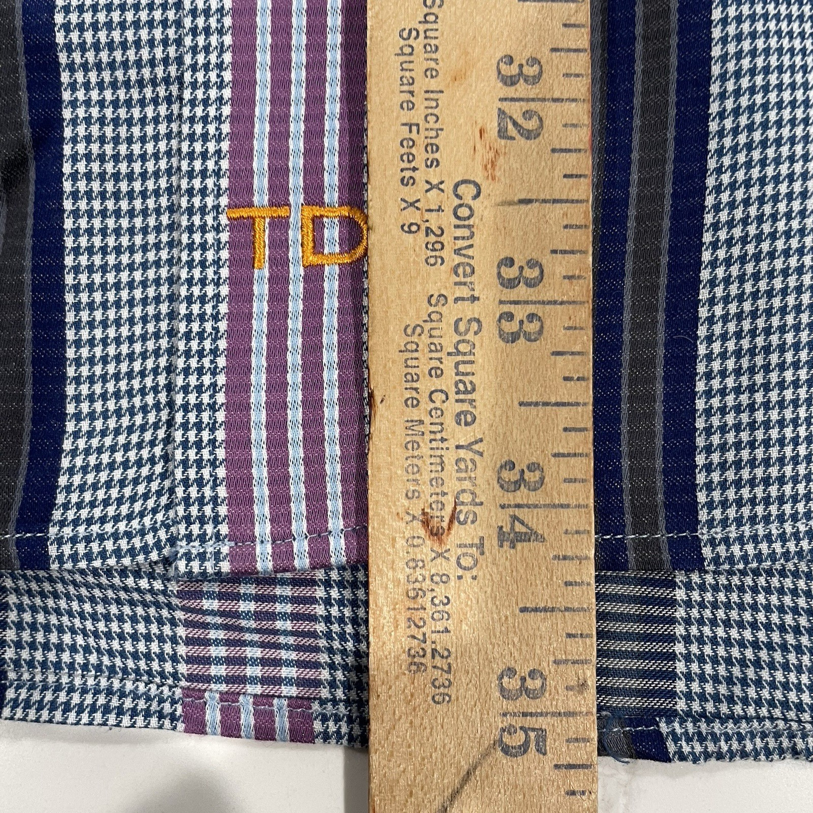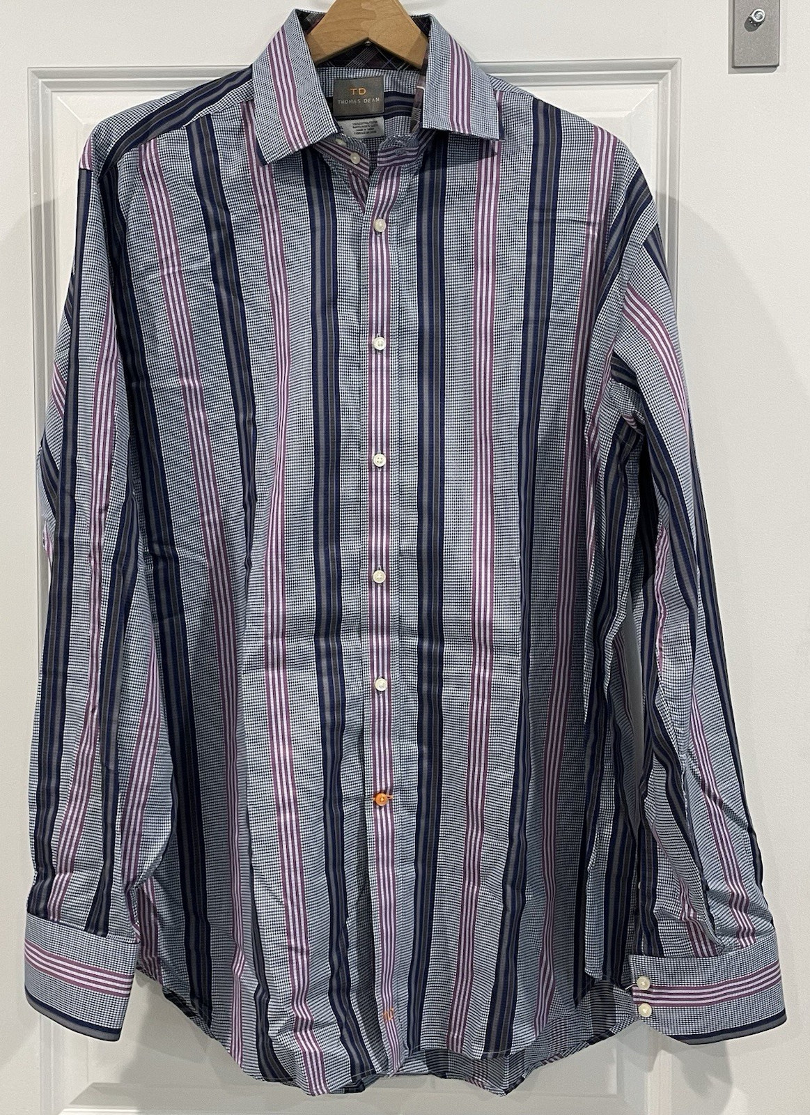 как выглядит Thomas Dean Flip Cuff Purple Navy Stripe XL Shirt Long Sleeve Button Down Men фото