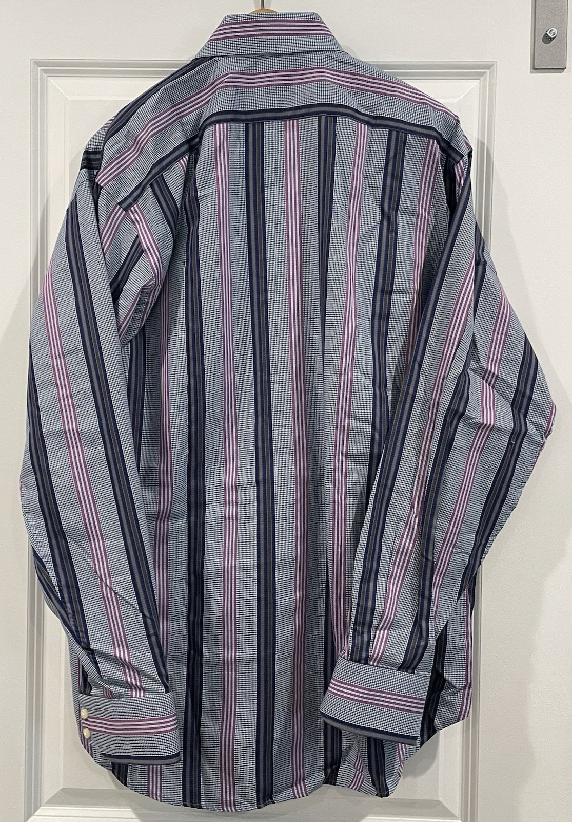 Thomas Dean Flip Cuff Purple Navy Stripe XL Shirt Long Sleeve Button Down Men