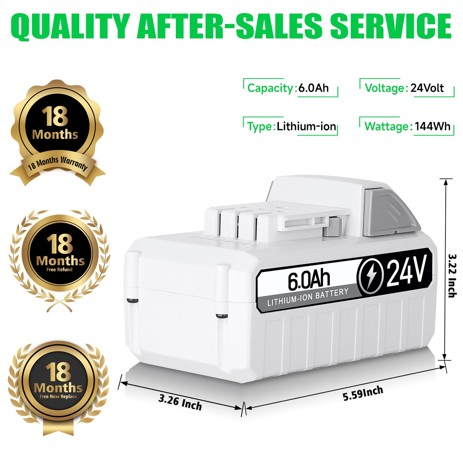 1 Pack 6.0Ah 24V Battery for Snow Joe Sun Joe iON 24V 24VBAT-LTX 24VBAT-LTW