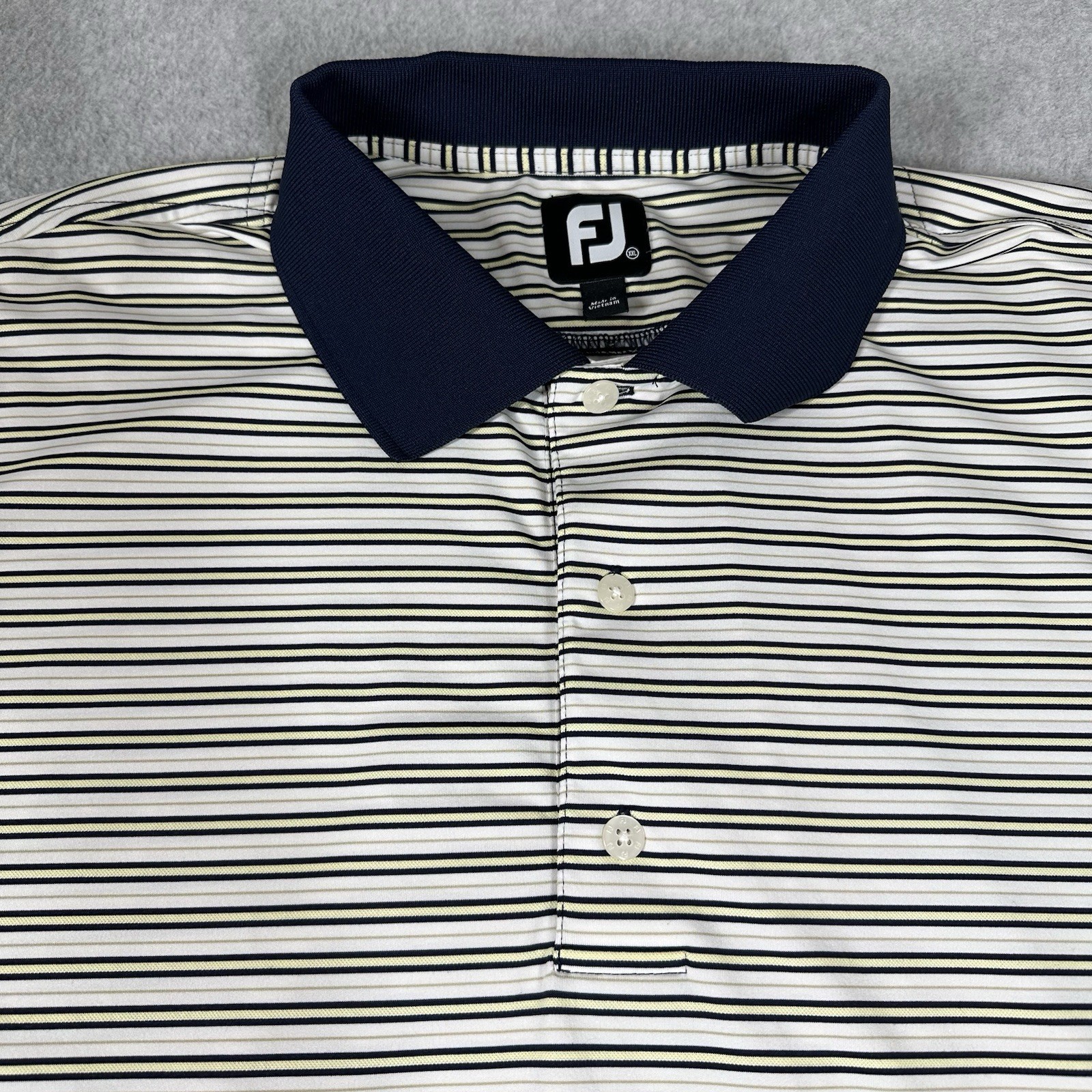 как выглядит FJ FootJoy Golf Polo Mens XL White Striped Performance Stretch Shirt фото