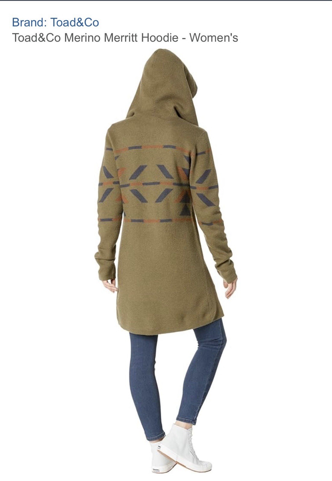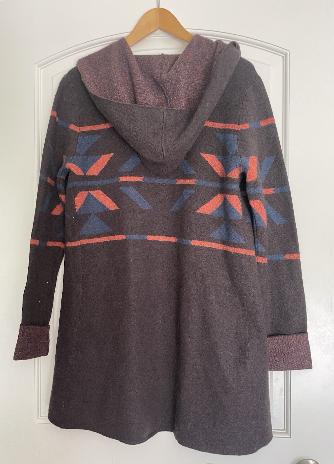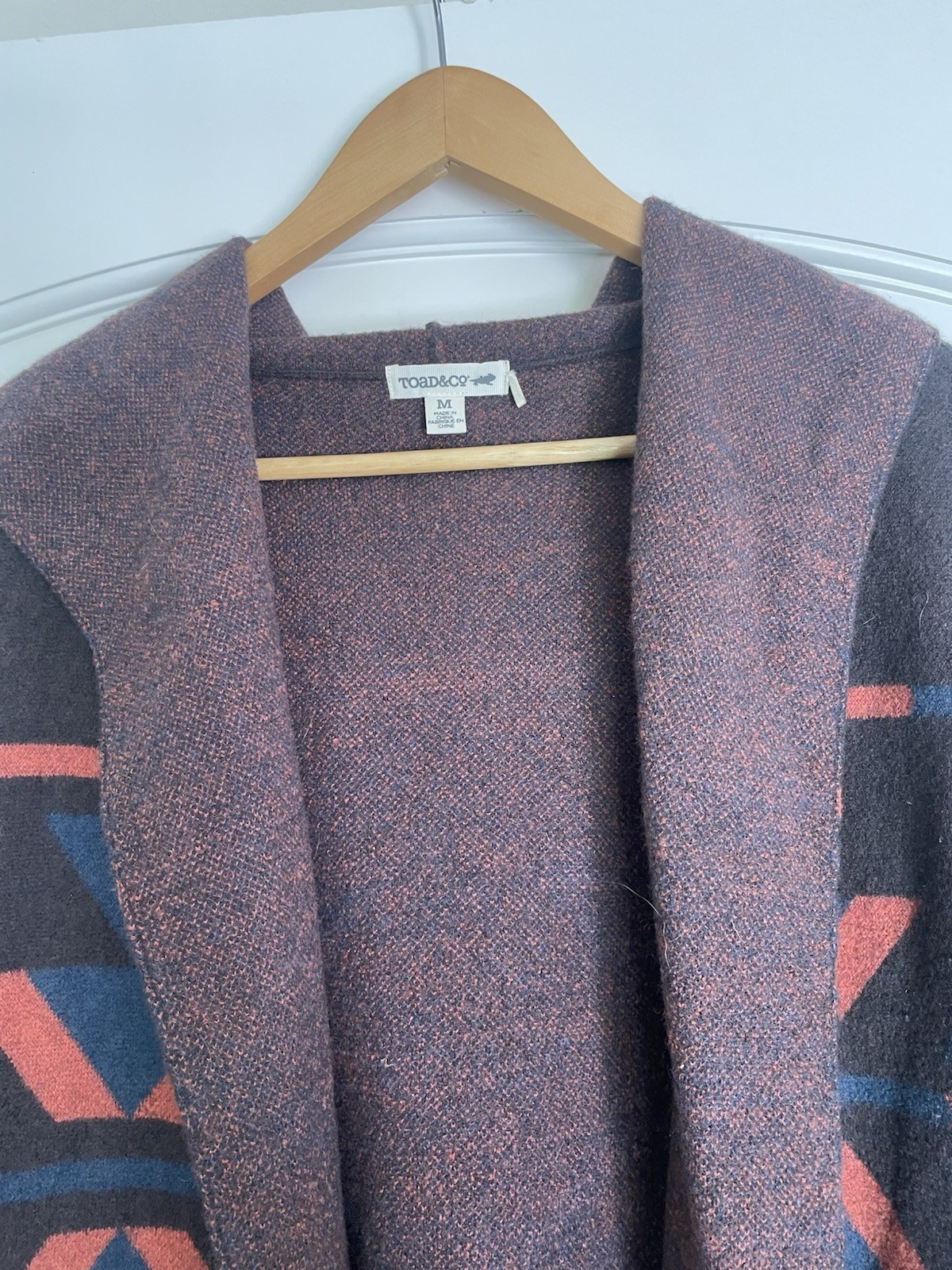 как выглядит Toad Co Merritt Hoodie Charcoal Rust Blue Wool Hooded Cardigan M Women