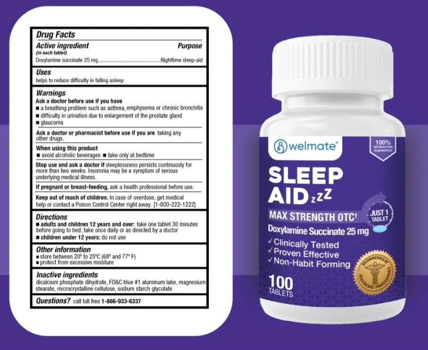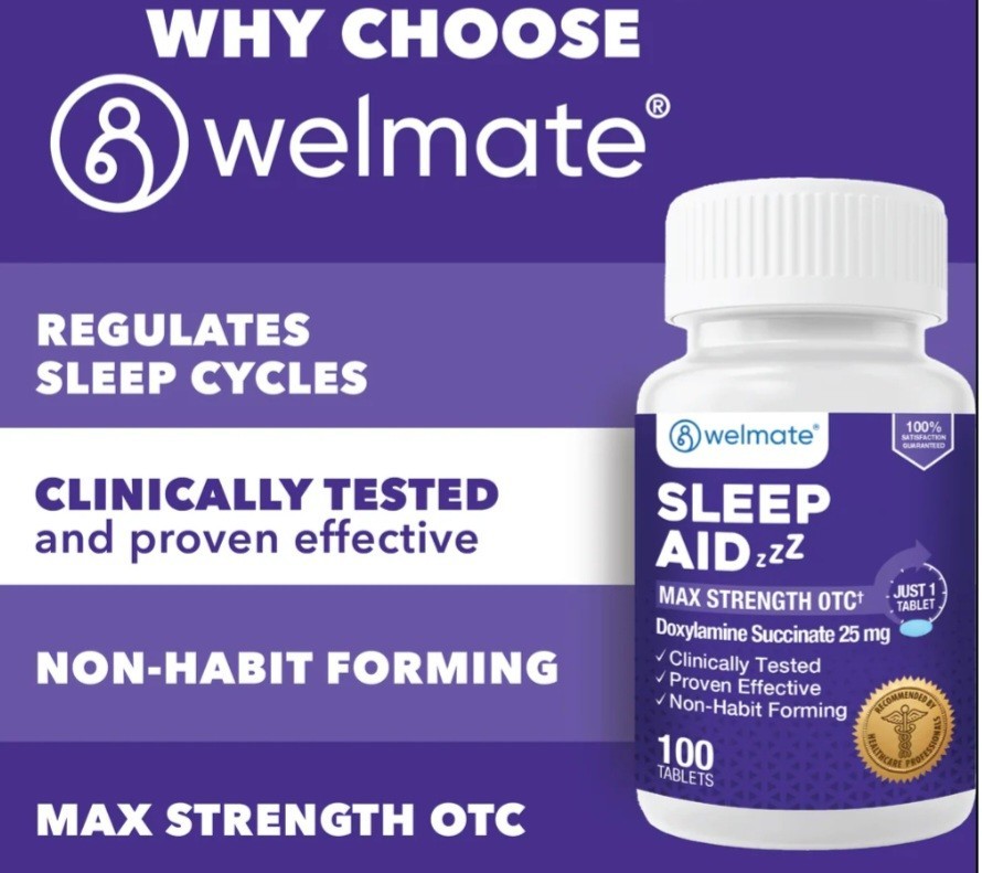 Wel-Doxylamine Succinate 25mg Nighttime Sleep 100 Tablets INTERNATIONAL SHIPPI
